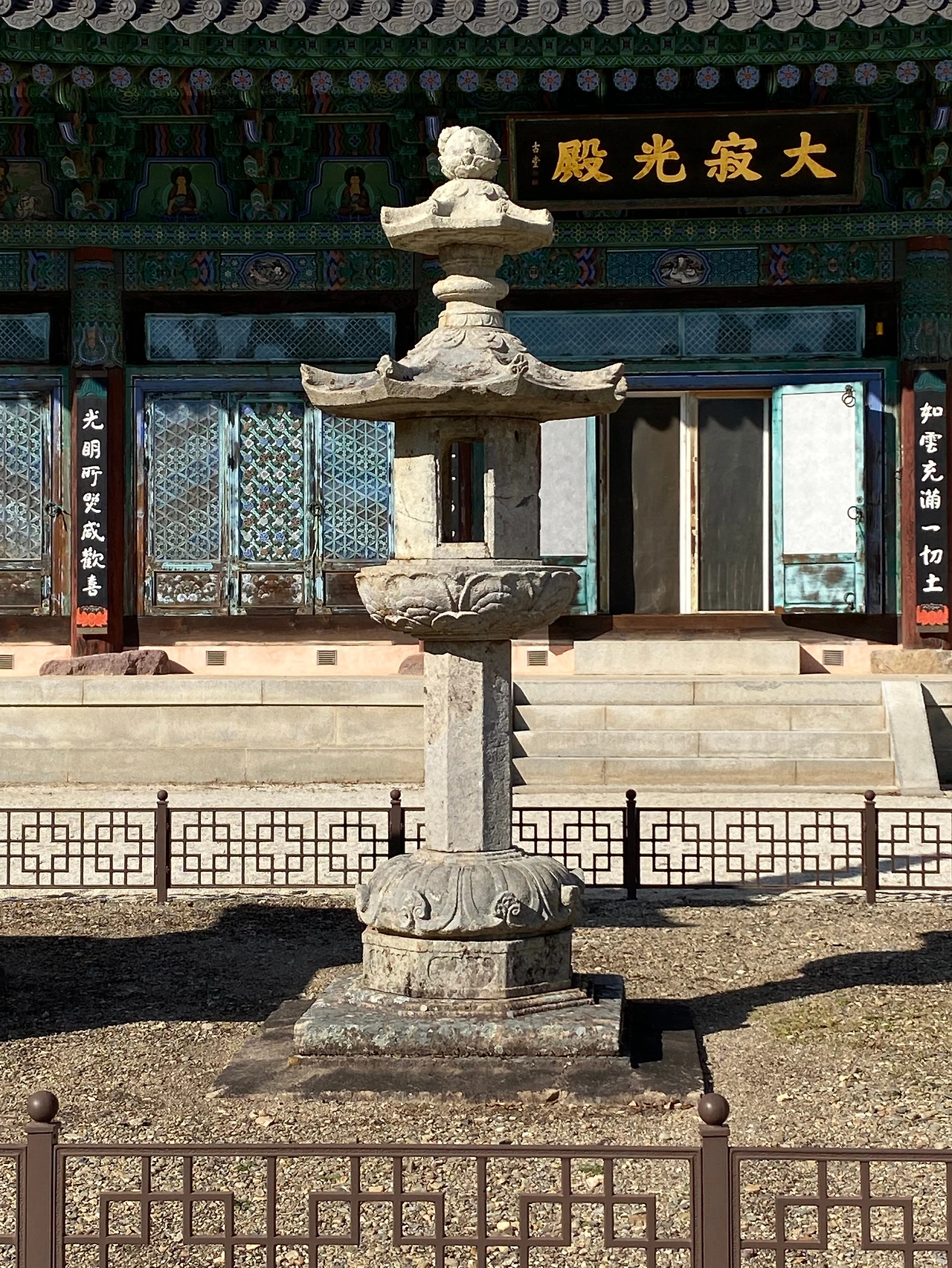삼층석탑 사이 석등도 완벽에 가까운 황금비를 보이는 통일신라 절정기의 솜씨다.