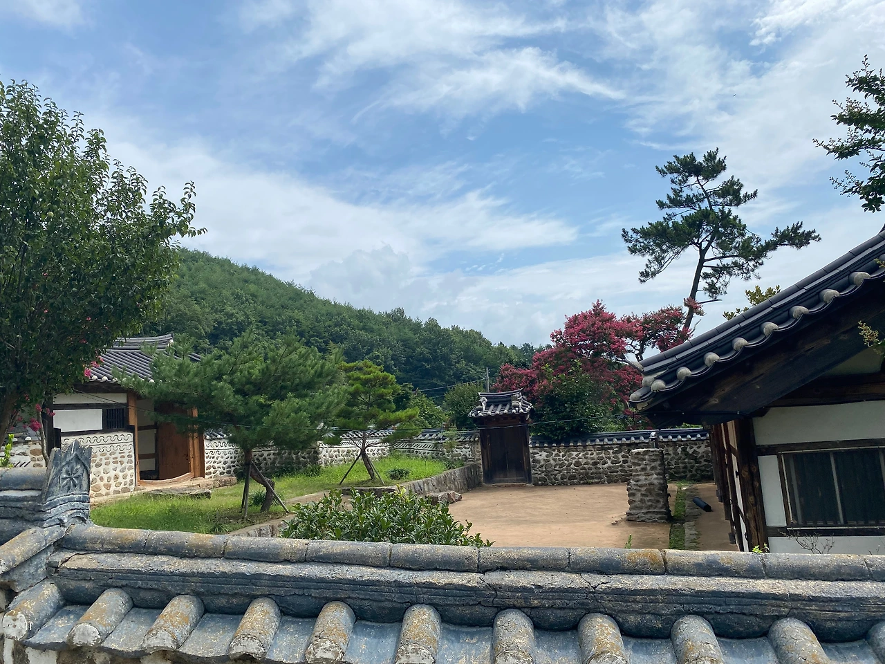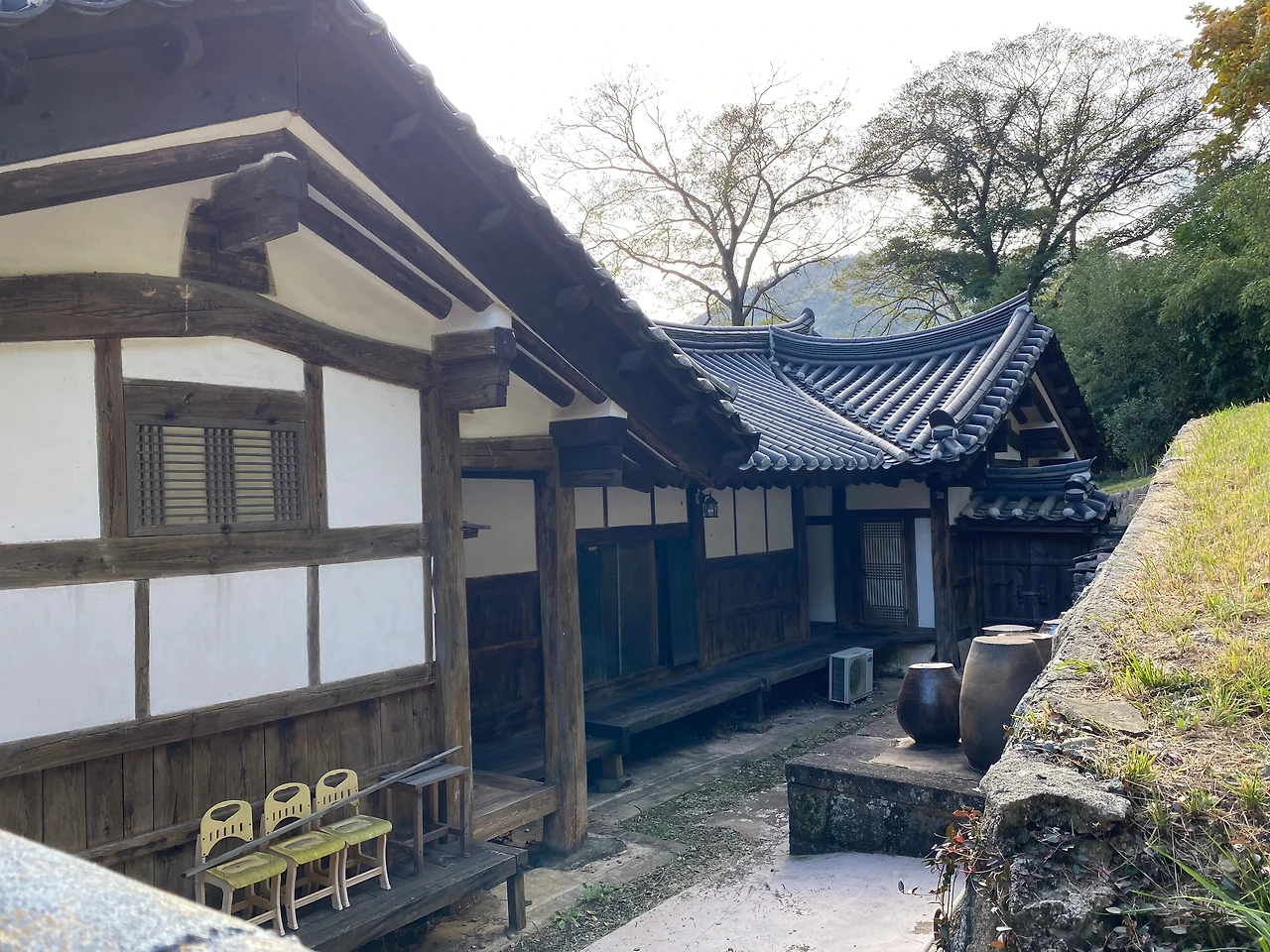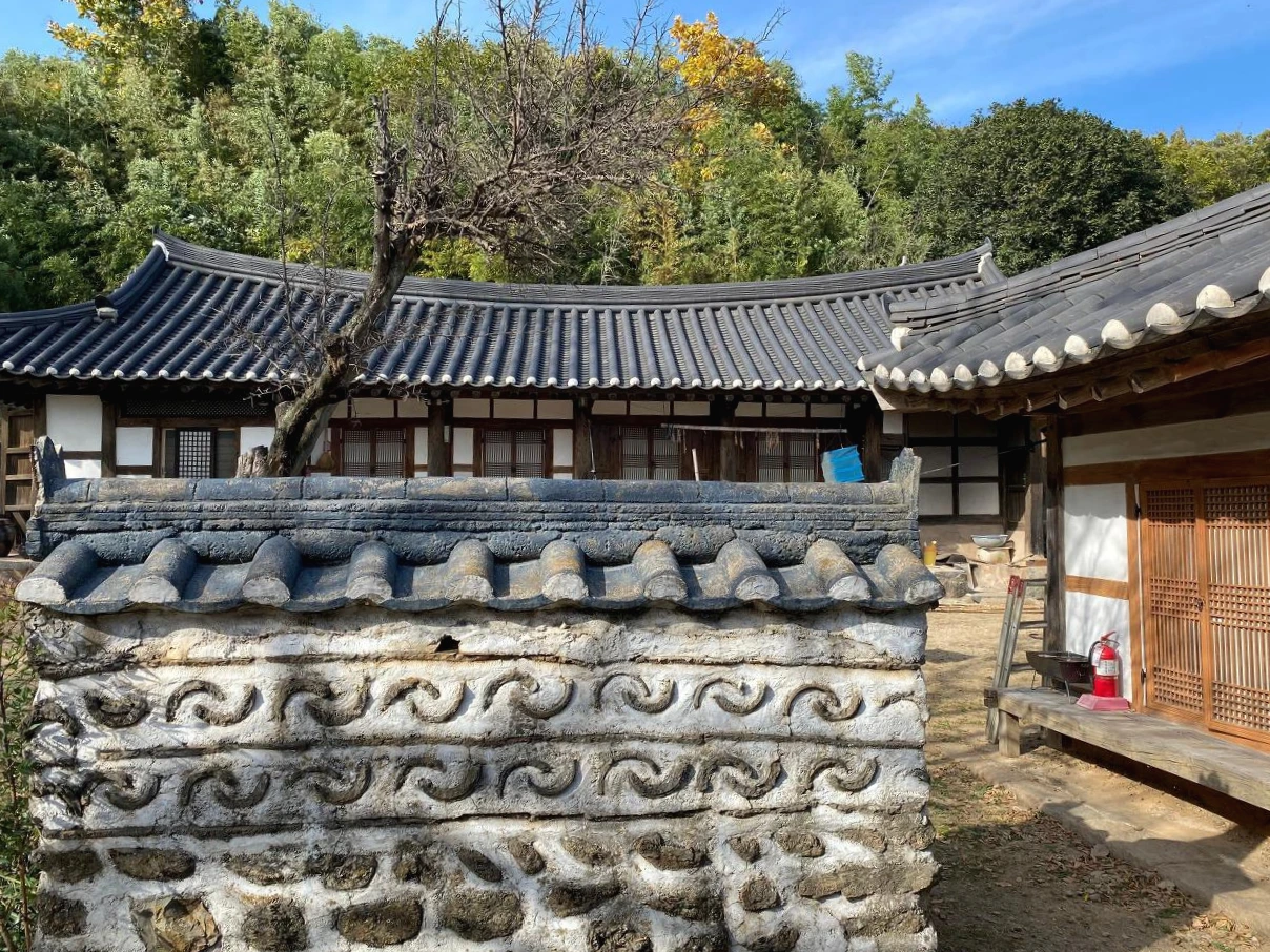 시멘트 기와를 얹은 내외 담의 외형이 한식 전통기와를 이은 다른 건물들과 조화롭지 않아 보인다. 아마도 안채와 사랑채 행랑채 등을 정비할 당시 담장은 기존 형태 그대로 유지한 것 같다. 나는 시멘트 기와라도 꽤 오랫동안 널리 쓰였고, 당시로선 합리적 이유가 있다면 문화재로서 재료의 '진정성'(authenticity)을 인정하는 게 옳다고 본다. 시멘트 기와라고 막무가내로 철거하고 전통기와로 바꾸는 것보다는 이 내외 담처럼 그대로 두는 것도 의미 있다.