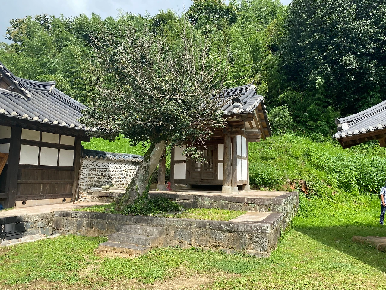 경사지를 정돈해 마당을 닦았고 일부는 석축을 쌓아 계단을 내고 양 옆으로 소나무를 심었다. 이를 '화계'라 하는데, 경사지 건축에 흔히 보이는 조경 수법이다.