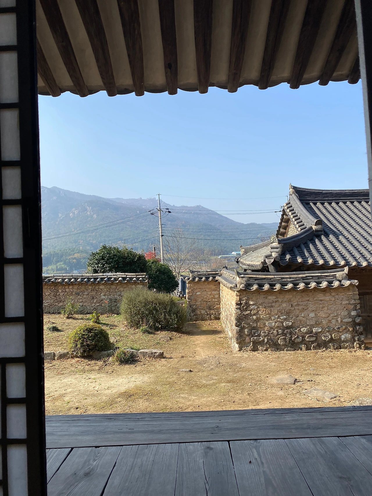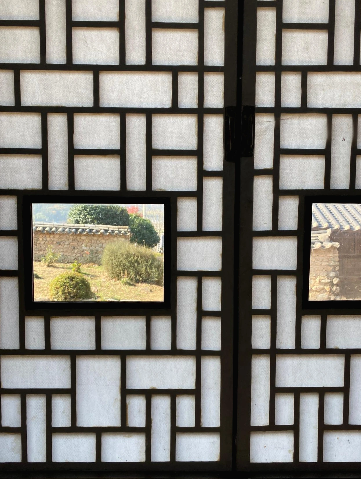 집주인의 호의로 안방에 앉아 차를 마시며 내다보니 감탄이 저절로 나왔다. 이 눈곱 째기 창은 안방에 앉은 사람의 시선 높이를 측정해 창호 제작 전에 미리 설계해서 만든 것 같다.