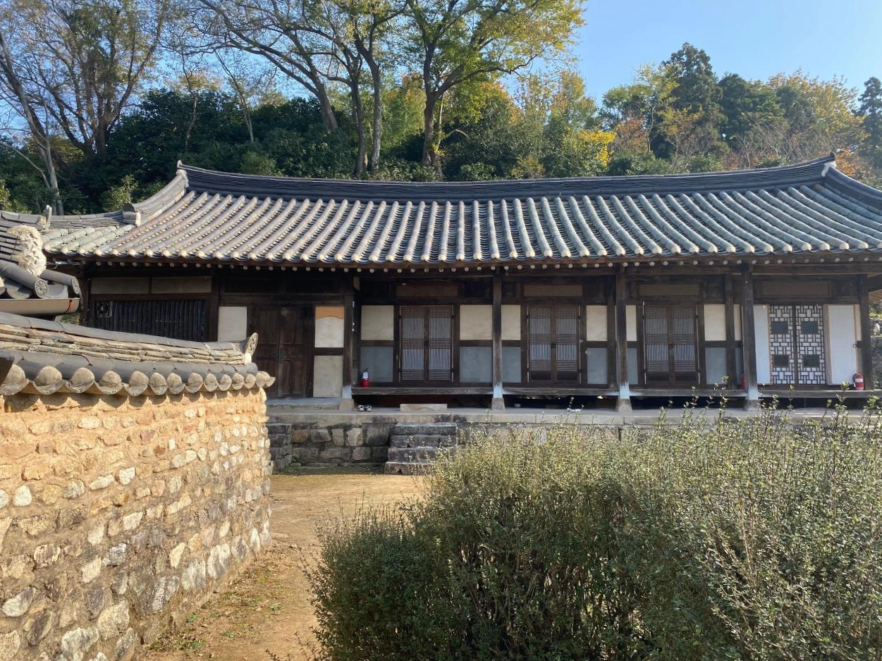 안채는 우리나라 남부지방에 많은 'ㅡ'자형 건물이다. 마당보다 높게 기단을 만들고 건물을 올렸다. 큰 건물 규모에 비례감을 잃지 않도록 기단을 충분히 높인 덕분에 집이 당당하다.