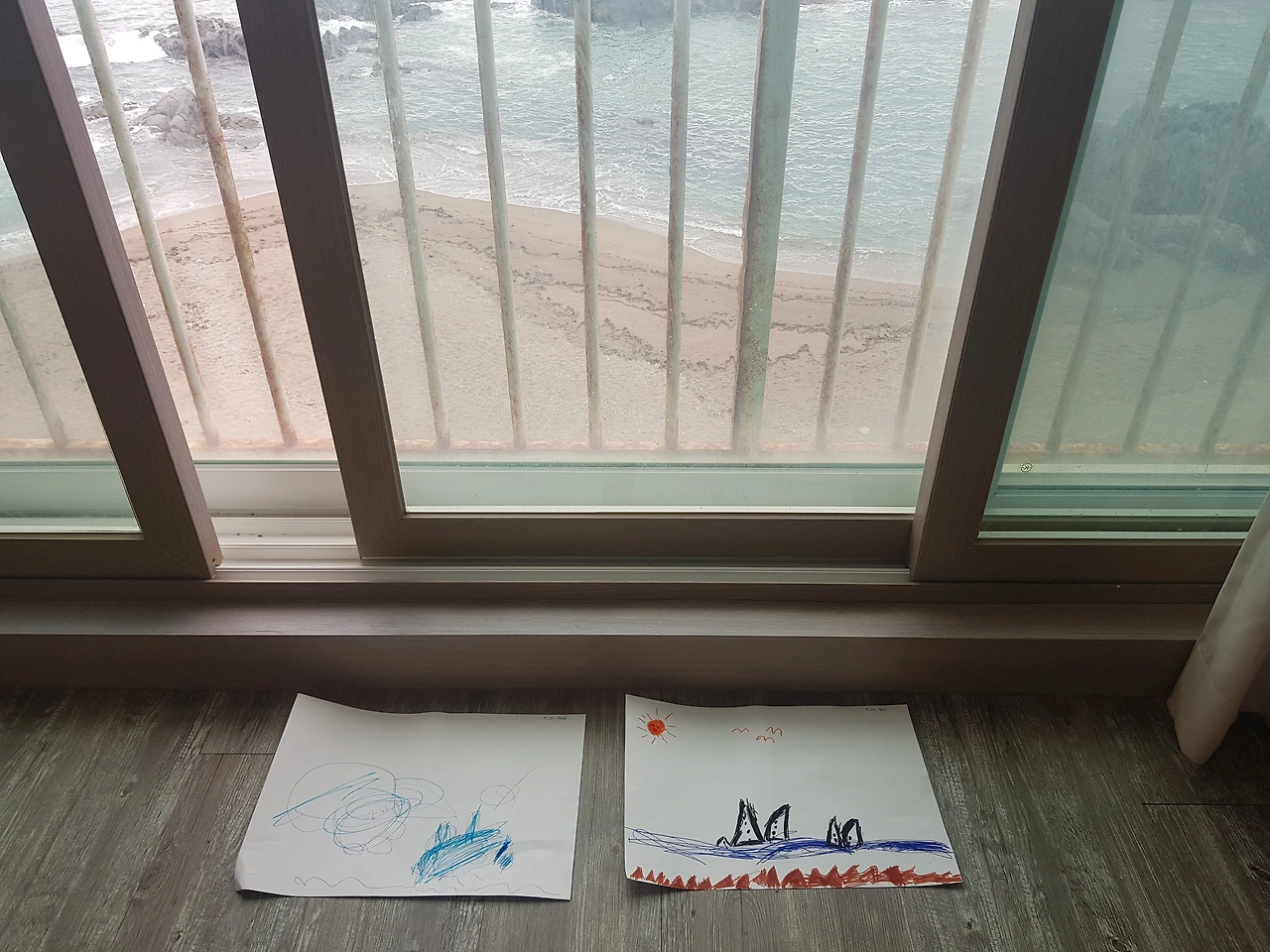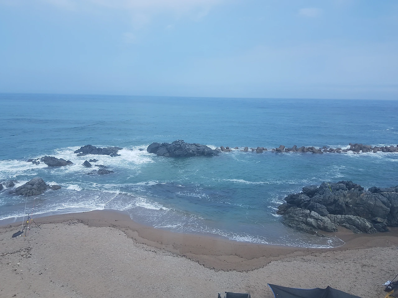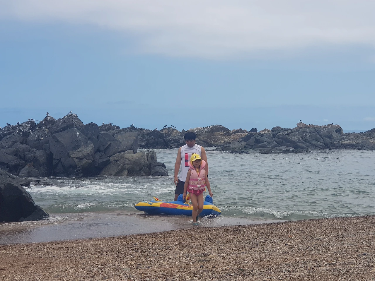 숙소는 영덕의 작은 해변에 위치한 세련되진 않았지만, 내 기준에 적합했던 해변 라인(물놀이할 때 아이들이 차도를 건너지 않아도 되는 곳)이었다.
