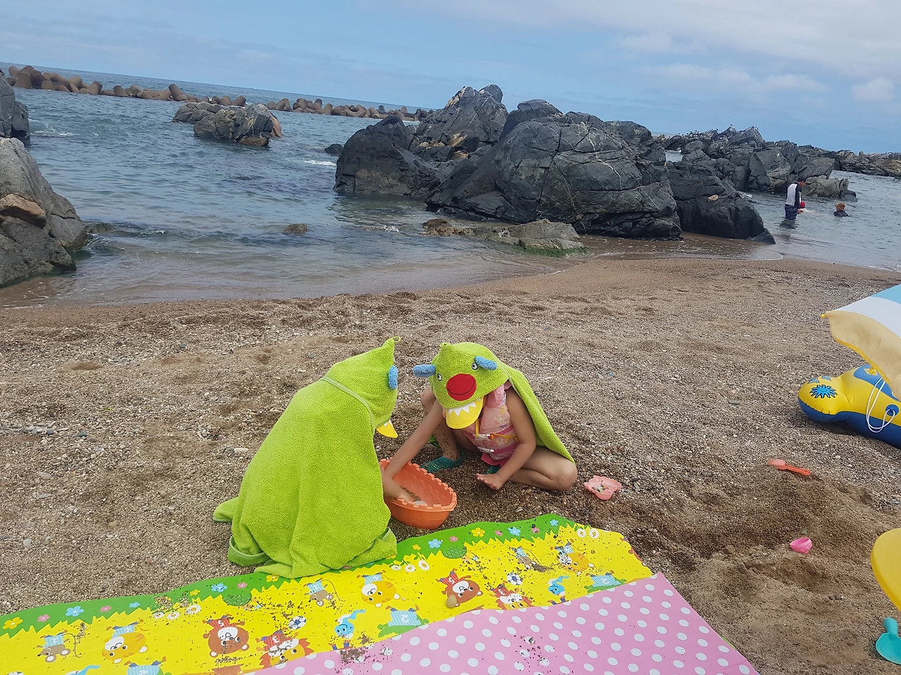 해변에서의 해수욕과 모래놀이를 신나게 즐겼던 아이들은 엄마, 영덕 여행은 너무 행복했어. 안녕 영덕바다야~
