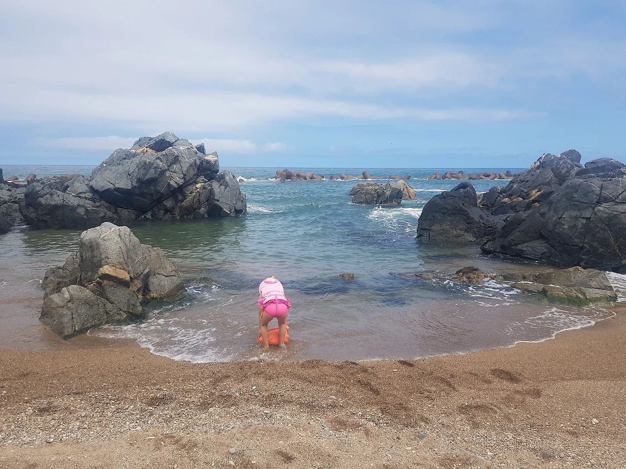 2박 3일 머무르는 동안 이틀 내내 원 없이 물놀이를 즐기고, 모래놀이를 즐겼다. 동해안이라 파도가 세고 물이 은근히 깊었지만, 조용하고 한적한 해변! 코로나 시국, 휴가철에 마치 우리만의 프라이빗한 장소 같았달까? 일요일에도 월요일에도 해변을 이용한 이용객수를 셀 수 있을 정도로 한적했다.