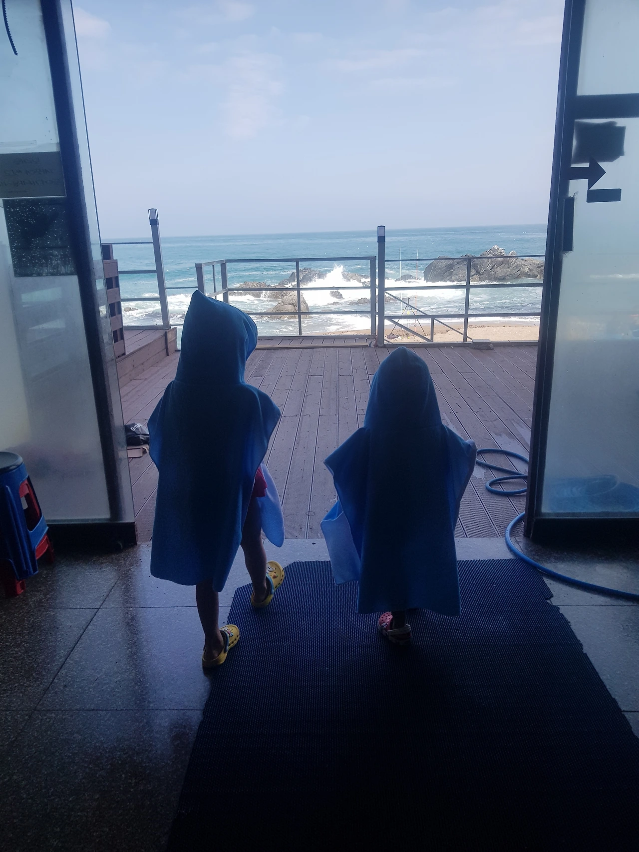 숙소 1층에서 계단만 내려오면 해변이라 아이들이 안전하게 해수욕을 즐길 수 있었다.