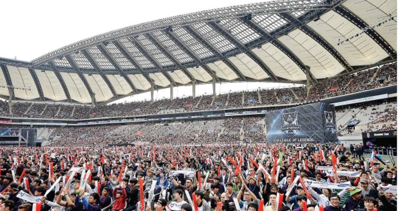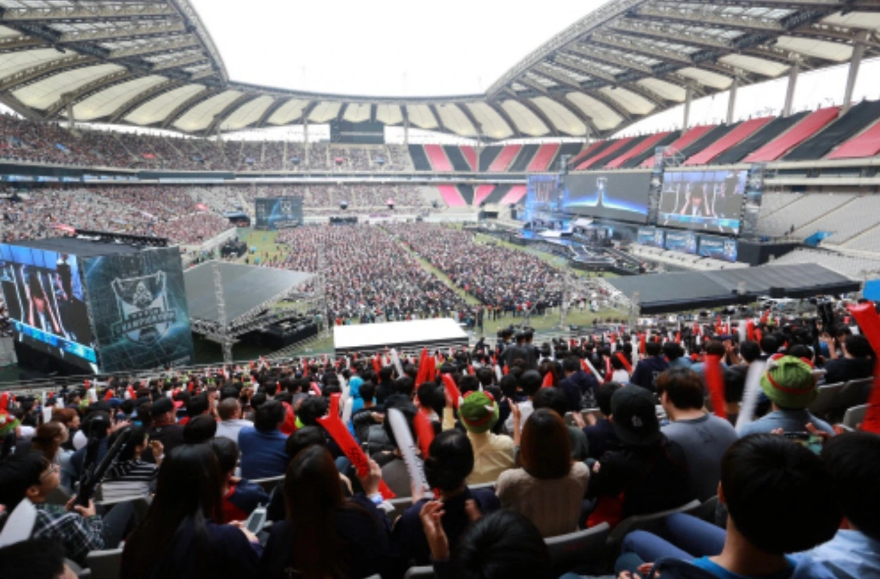 2014 LoL 월드 챔피언십, 즉 2014 롤드컵은 엄청나게 성공적이었다. 결론적으로 한국 대표팀들의 활약이 매우 뛰어났고, 결국 그중 한 팀이 우승을 차지했다. 상암 월드컵 경기장에서 열린 결승전에는 4만 명의 E스포츠 팬이 가득 모였다. 6만 명까지 수용 가능한 해당 경기장에 2002 월드컵 이후 최대 관객이 모인 경우라 했다. 당시의 기술로는 중앙 무대가 아닌 스타디움의 한쪽에 대형 무대와 화면을 설치하는 구조를 택했었는데, 때문에 그 뒤쪽으로의 관객석은 사용되지 못했었다. 오늘날의 진행 방식과 같이 중앙 무대까지 가능했다면 사실 4만 명보다도 더 많은 관객 수를 기록했을 것이다.