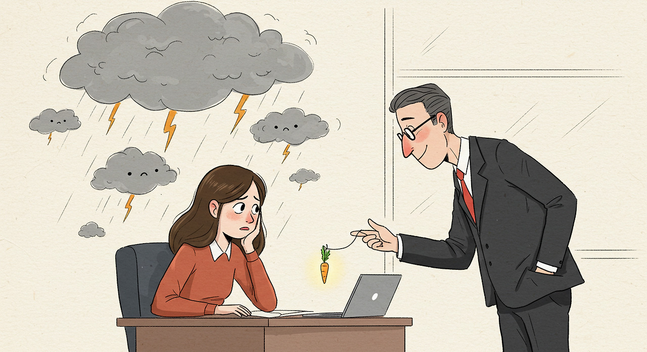 일주일 내내 나를 무시하고 핀잔을 주던 상사가, 어느 날 갑자기 "그래도 이 프로젝트는 아영 씨밖에 없어"라며 힘을 실어주는 순간. (지가 하기 싫어서 떠넘기는 건지는 나중에 봐야 알겠지만요.) 우리는 그 가뭄에 콩 나듯 주어지는 찰나의 인정에 강렬한 안도감과 희망을 느낍니다.