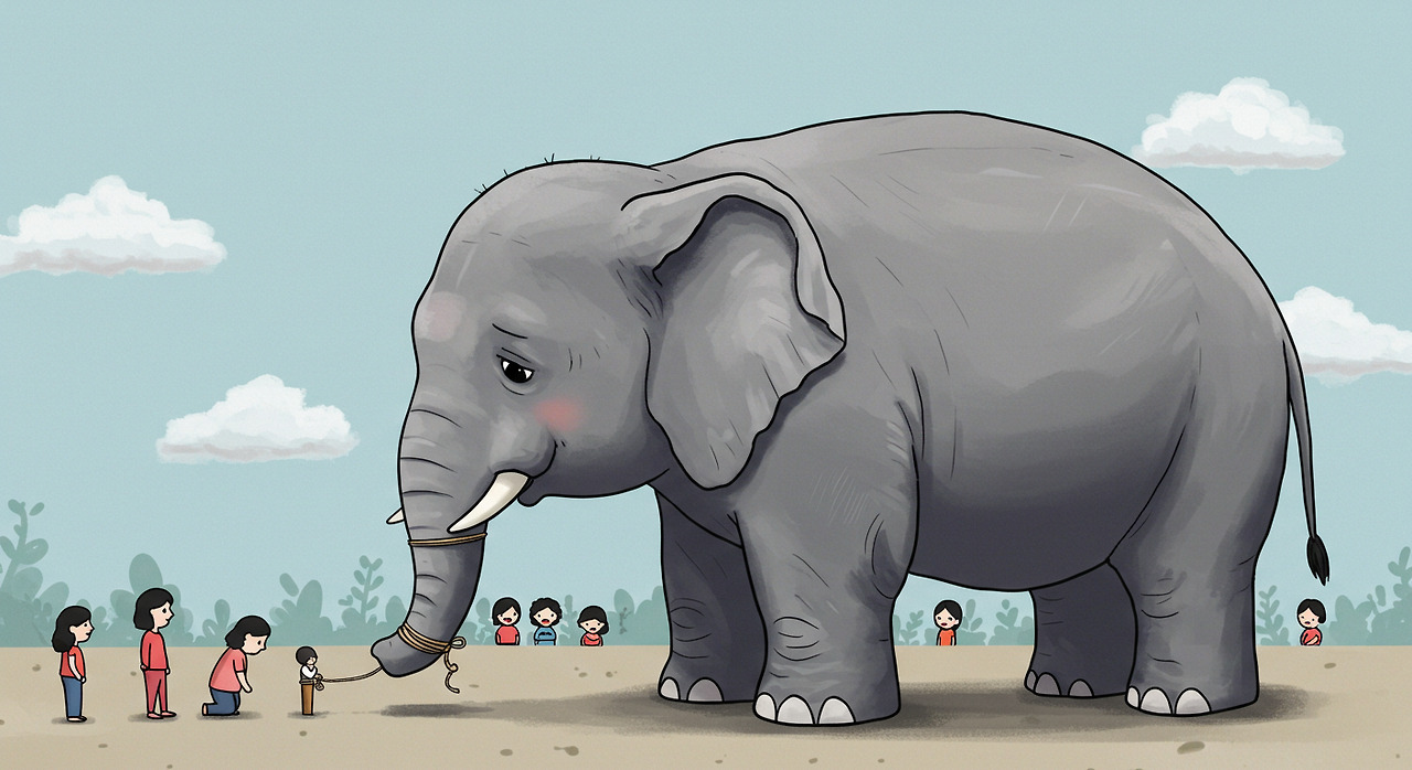 거대한 코끼리를 묶어두는 얇은 밧줄처럼, 과거의 실패 경험은 우리의 가능성을 스스로 제한하는 '투명한 감옥'이 됩니다. 저희 동료들이 과거의 실패 때문에 새로운 도전을 주저했던 것처럼 말이죠.