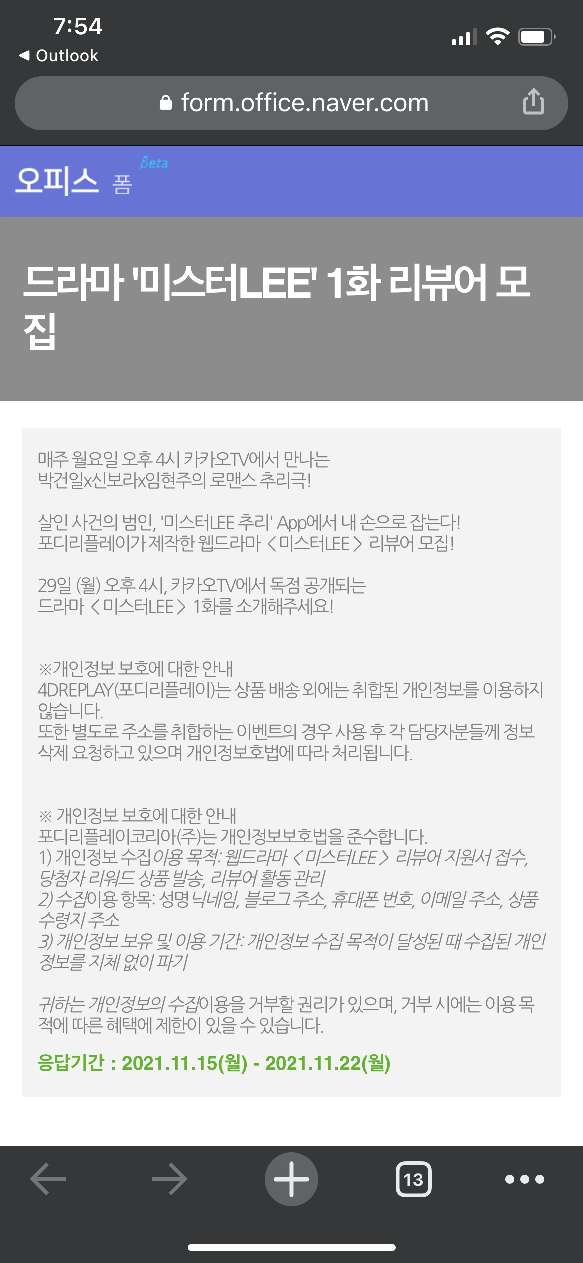 드라마 론칭 1주일 전. 나를 번아웃으로 몰고간 일을 스스로 회사에게 제안하고 그렇게 나는 리뷰단 운영의 길을 떠나기로 스스로 결정한다. 나중에 그래도 <미스터LEE> 홍보를 주도해서 혼자 다 했다고 말하기에는 언론홍보와 소셜미디어를 통한 홍보로는 부족했기 때문에 돈 들이지 않고 내가 할 수 있는 최소한의 홍보 중 하나가 바로 리뷰어 운영이었다. 그리고 너무나 SEO가 필요했다. 아니, 홍보를 했는데 언론기사만 낸건 홍보가 아니지 않는가. 그래서 선택한 것이 바로 드라마 <미스터LEE> 리뷰단(드라마/연예 인플루언서) 섭외를 통한 홍보다.