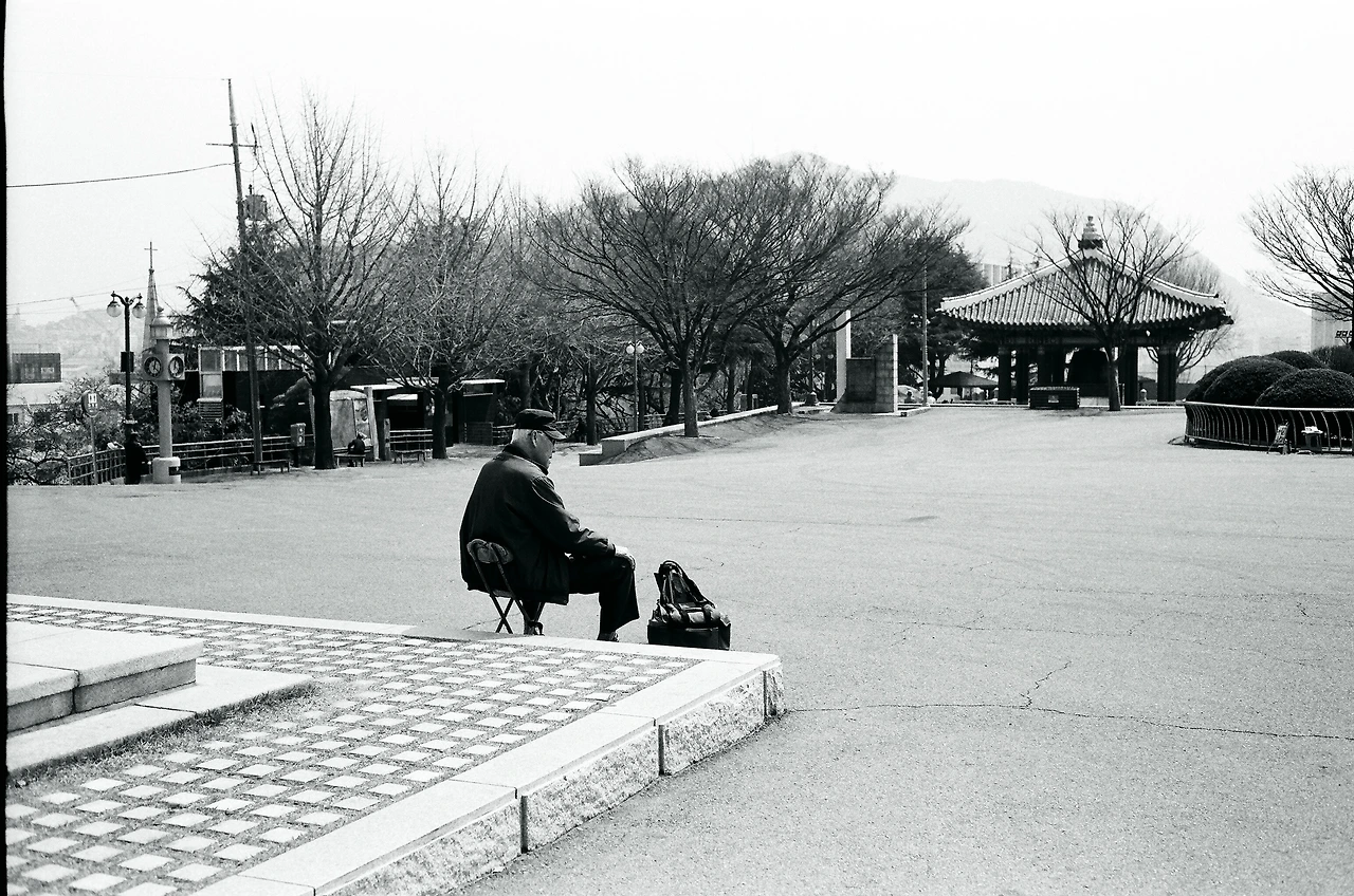 용두산 공원 벤치에서 조심스레 필름을 넣고 있을 때 다가왔던 거리의 사진사 아저씨.