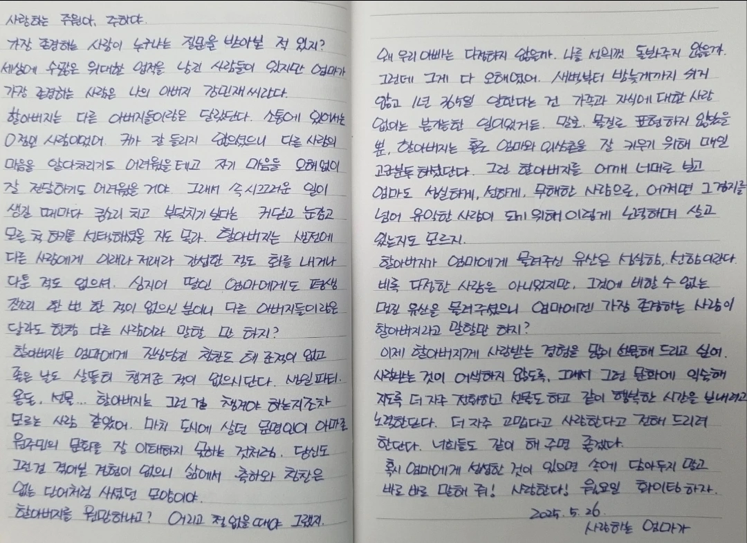 오늘 우리 아버지 종일 기분 좋으셨으면...