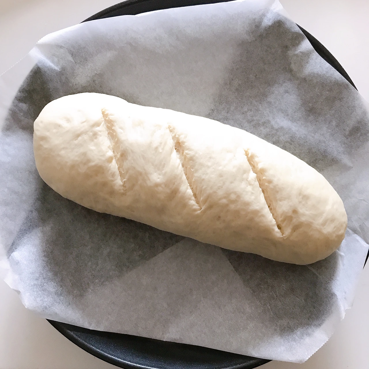 4. 발효가 끝나면 원하는 모양으로 칼집을 넣고 200도 오븐에 20분 동안 굽는다. (오븐의 화력에 따라 굽는 시간이 달라질 수 있다. 화력이 좋으면 15분 만에도 완성이 되니, 빵의 표면 색깔을 보고 타기 전에 꺼낸다.)