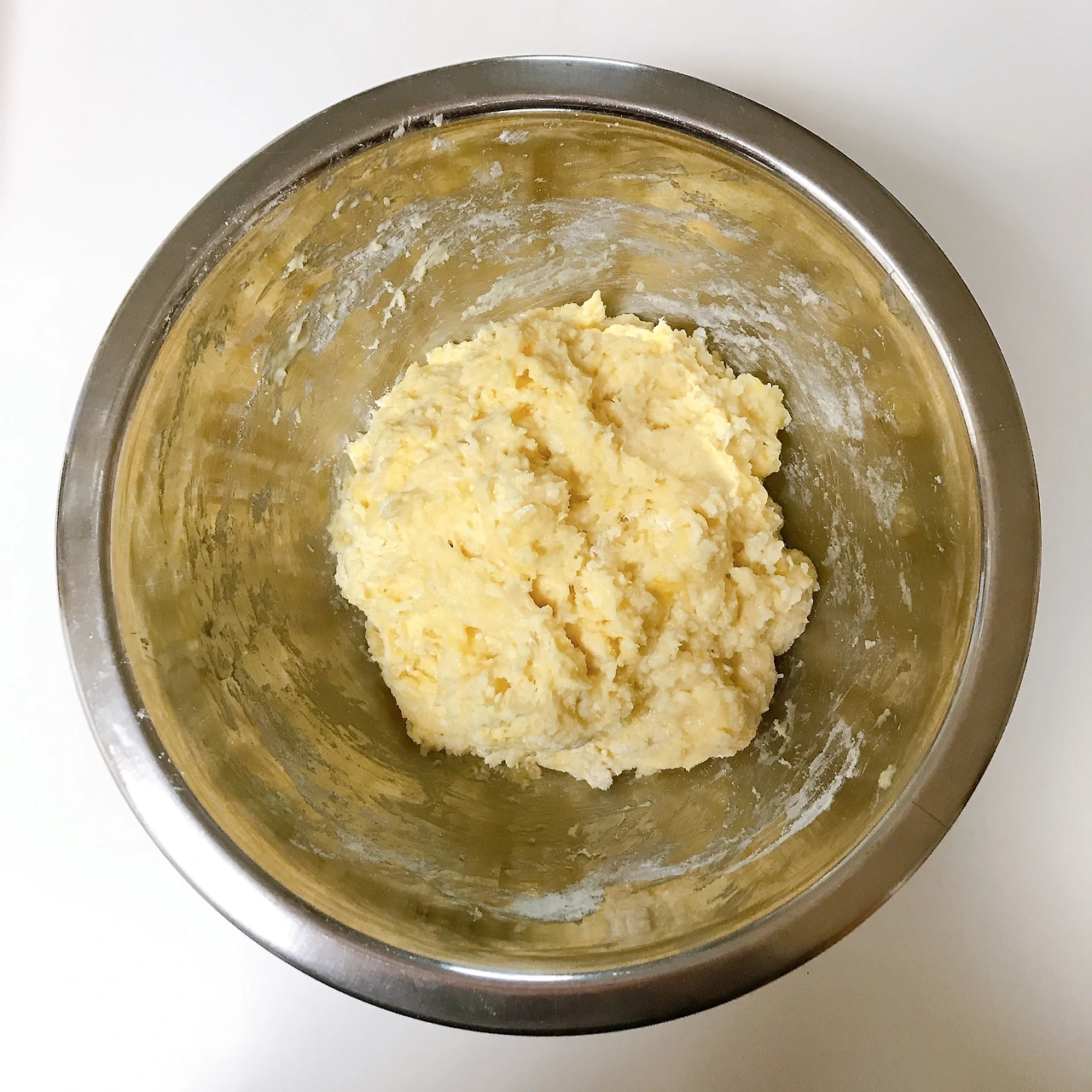 밀가루(박력분 또는 중력분) 150g, 소금 2g, 설탕 20g, 베이킹파우더 2g, 버터 30g, 달걀 1개, 우유 45g