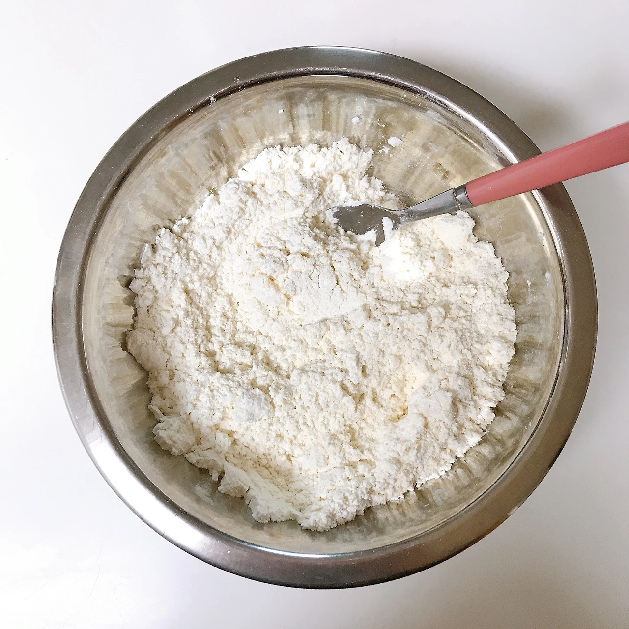 1. 밀가루, 소금, 설탕, 베이킹파우더를 볼에 담아 가루 재료가 잘 섞이도록 포크로 휘저어준다.