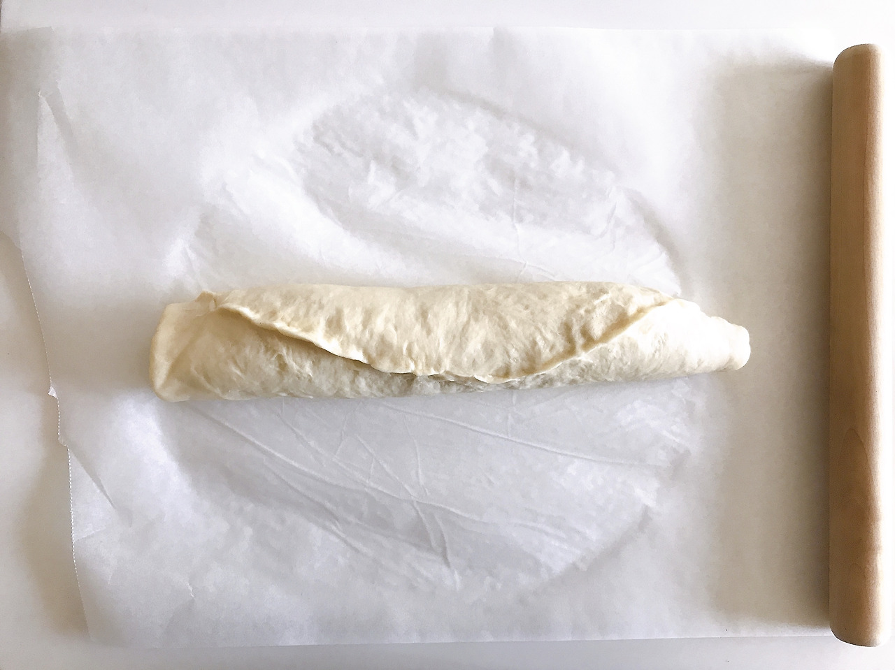 4. 반죽을 밑에서부터 돌돌 말아서 끝을 꼬집어 여며준다.
