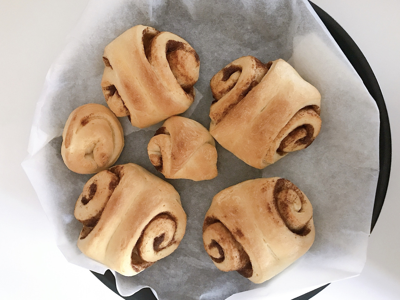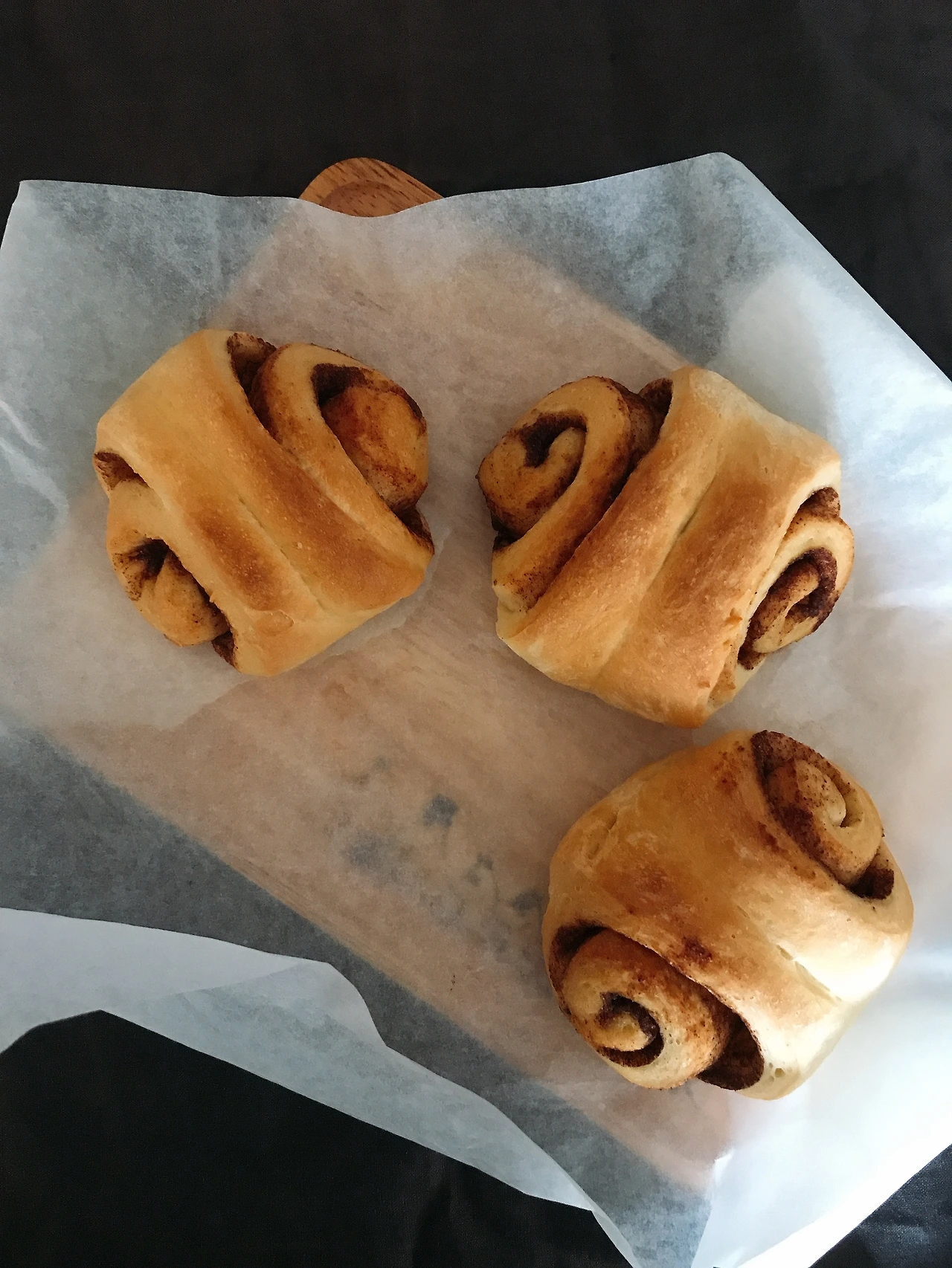 여느 때처럼 조용히 지나가던 어느 날, 영화에서 본 시나몬롤이 생각나서 만들었다. 직접 만든 빵은 발효시간이 길어 수고롭지만 재료를 내 입맛대로 넣을 수 있다는 것이 장점이다. 빵 반죽의 가루와 액체의 비율만 지켜주면 그 안에서는 내가 원하는 대로 할 수 있다. 달걀의 고소함보다 우유의 부드러움을 더 맛보고 싶었던 나는 빵 반죽을 할 때 달걀을 빼고 그만큼 우유를 더 넣었다. 향신료를 좋아하기 때문에 시나몬가루는 많이 넣었다.