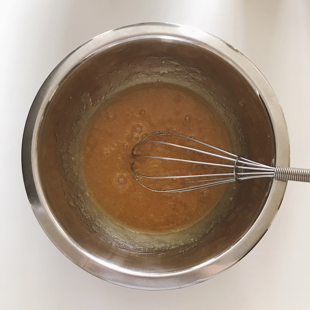 1. 달걀, 식용유, 설탕을 볼에 담고 섞는다.