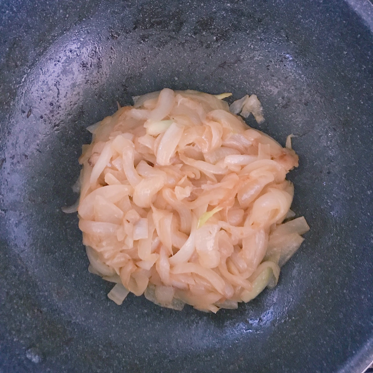 양파를 잔뜩 채썰어 깊은 팬에 담아서 양이 거의 1/4로 줄어들 때까지 볶아준다. 이렇게 하면 양파가 갈색이 되고 달달한 향이 난다. 거기에 물을 붓고 카레를 풀면 양파카레가 된다. 우유를 조금 넣으면 더 부드럽고 고소한 맛이 난다.