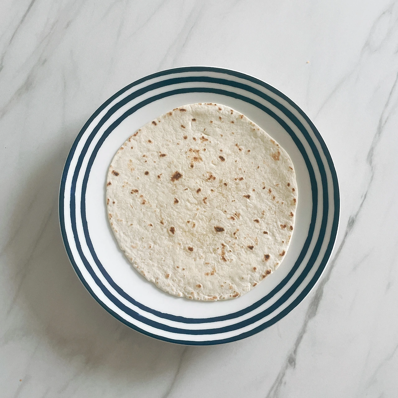 1. 또띠아를 기름 없는 후라이팬에 앞뒤로 굽거나, 부드러운 또띠아를 좋아하면 전자레인지에 10초 정도 살짝 데운다.