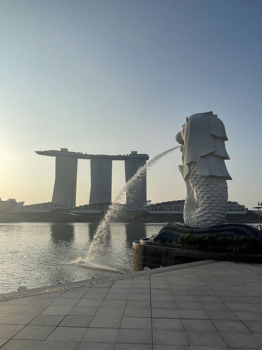 마지막에 보이는 것이 멀라이언 파크(Merlion Park). 상반신은 사자, 하반신은 물고기를 한 가상 동물로 싱가포르의 가장 유명한 랜드마크인 멀라이언을 보는 순간 오늘 러닝에 대한 보상을 받는 기분이었다. 그렇게 멀라이언을 마지막으로 보고 출발점으로 돌아와서 3킬로미터 조금 넘은 마리나베이 러닝을 마쳤다.
