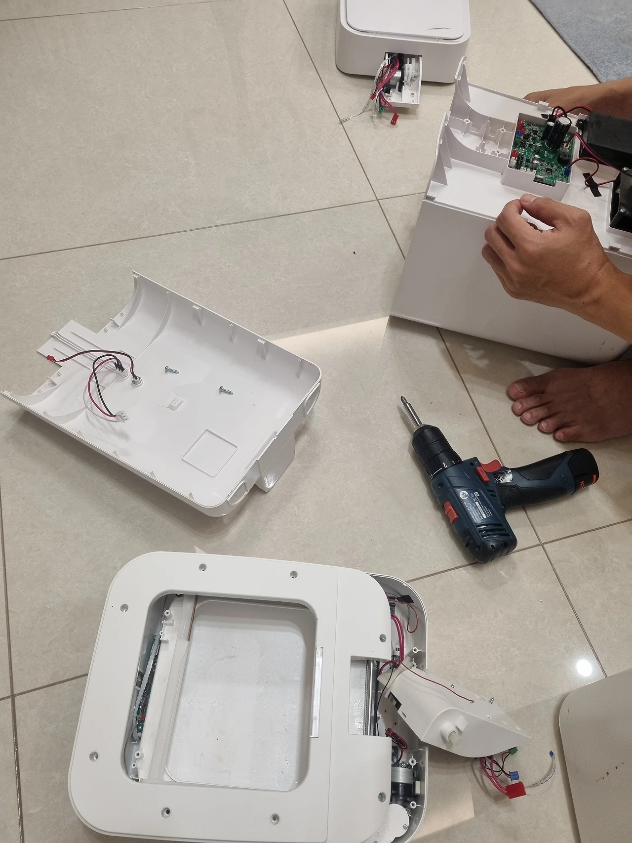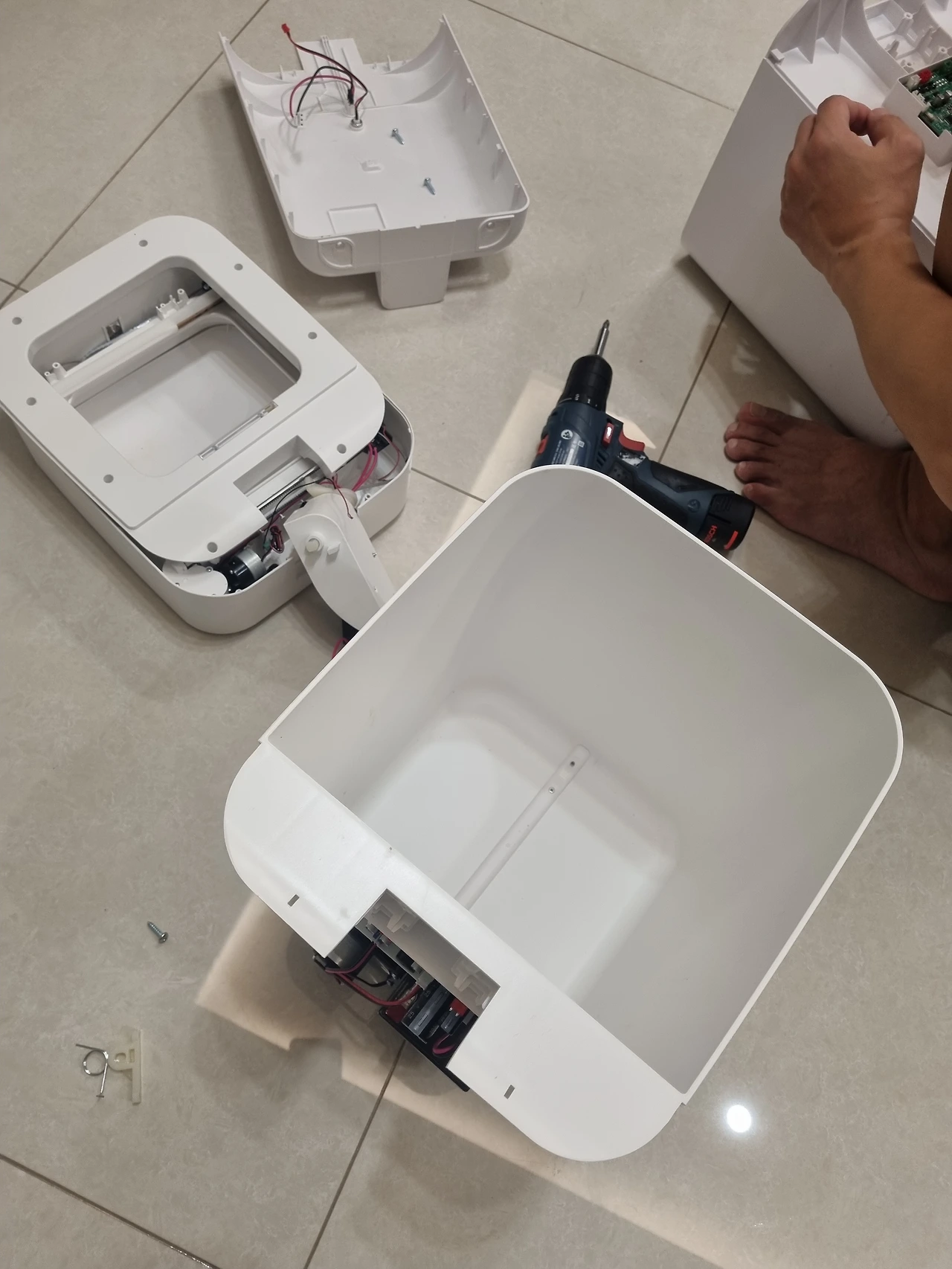 아이들을 재우러 들어간 사이 맥가이버는 전동드라이버 하나를 들고 와서 뚝딱뚝딱 고치기 시작한다.