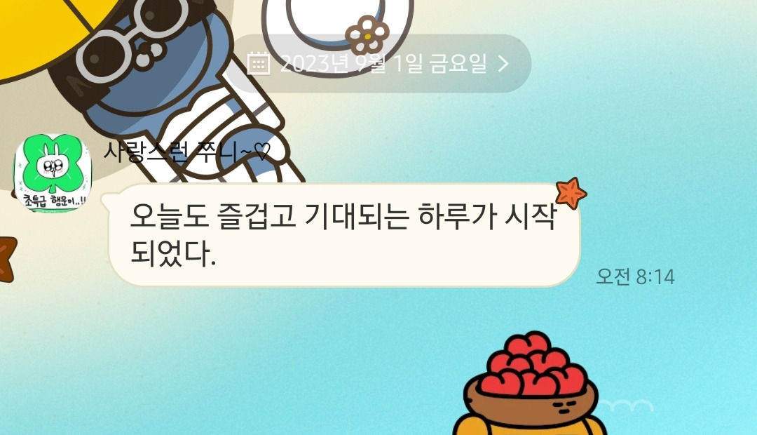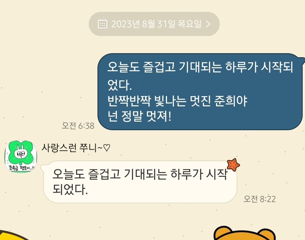 타자마자 응원확언을 하려고 핸드폰을 여는 순간 톡이 왔다.