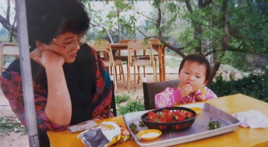 입에 딸기물을 잔뜩 묻히고 열심히도 먹는 딸과 그런 딸을 가만히 바라보는 우리 엄마.
