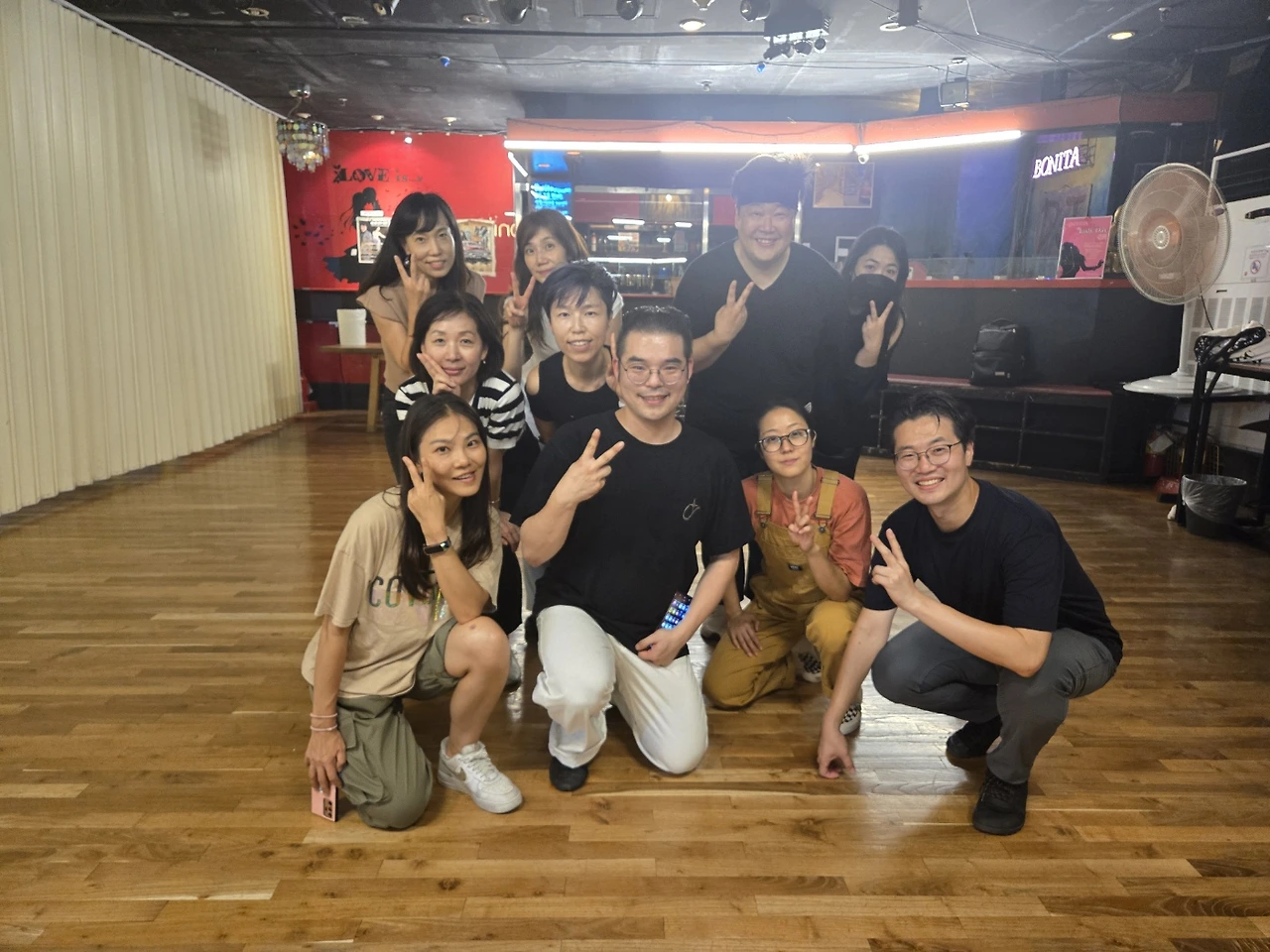 수업에 참석한 사람들이 하나둘 모였고 오늘의 춤 블러드 라인을 배웠다. 정확히 15분 만에 오늘 배울 춤의 진도가 끝이 났고, 리허설까지 20분이면 충분했다. 목 뒤에서 땀이 주르륵 흘러내렸다. 주변에 함께 춤을 배운 사람들도 덥다며 모두는 선풍기 앞에서 대동단결했다.
