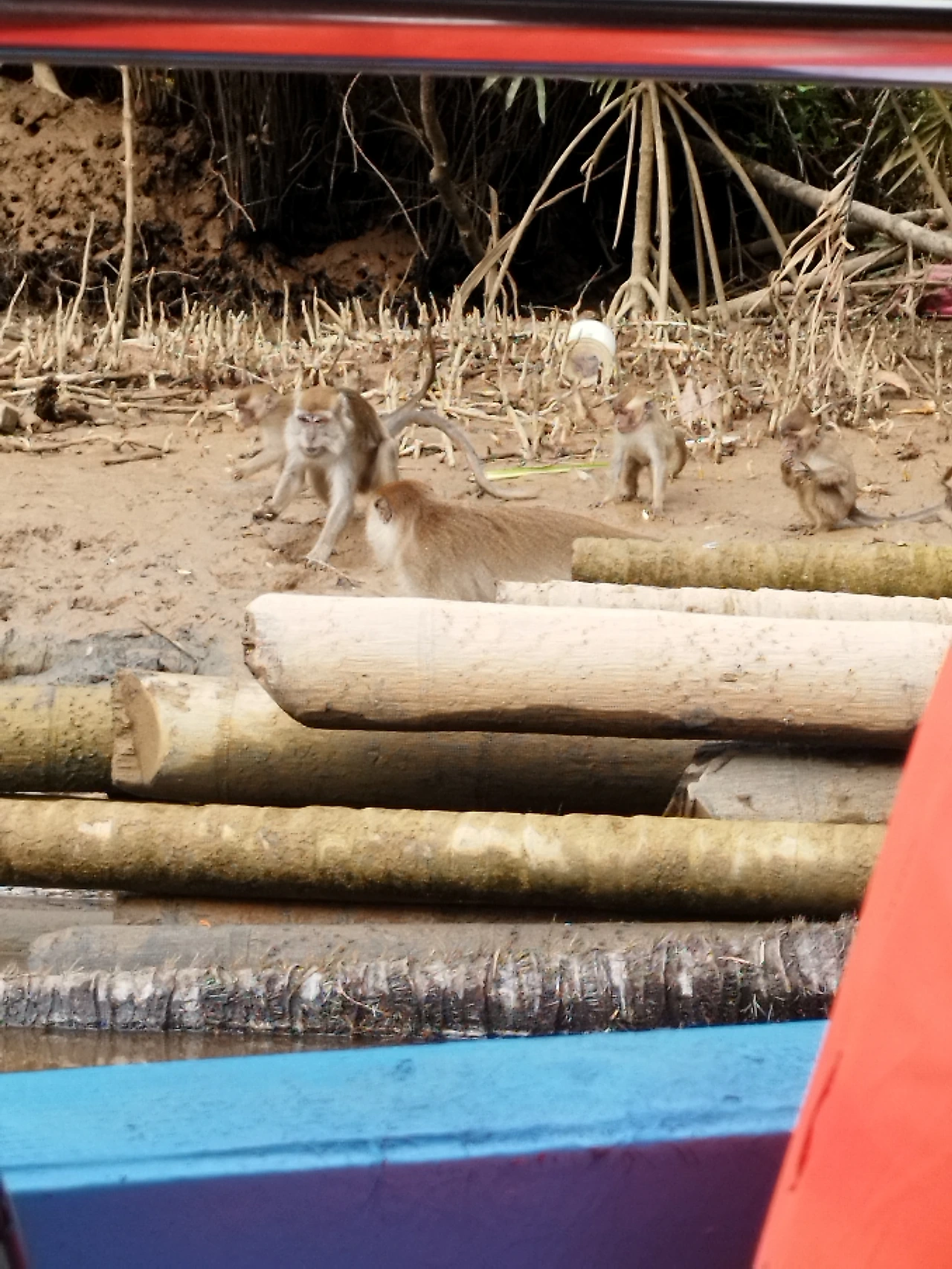 배를 타고 조금만 나가보면 이렇게 야생 원숭이 무리가 배 근처로 온다. 원숭이가 영리해서 이 녀석들이 워낙 많은 배가 와서 간식을 던져주니까 배가 오면 먹을 게 있다는 걸 알고 있다.