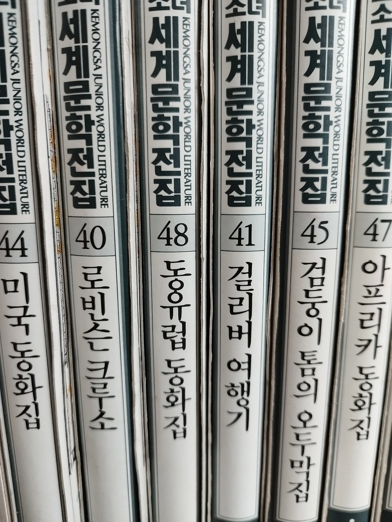 내가 한글을 떼고 책을 혼자 읽기 시작했을 때부터 난 누가 시키지도 않았는데 책을 보물처럼 관리했다. 우리 엄마는 첫째가 책을 좋아해서 집에 책이 잔뜩 있으니까 둘째도 누나를 따라서 책을 저절로 읽을 거라 생각하셨다. 그런데 안타깝게도 남동생은 책에 별 관심도 없었고, 그래서 내 책은 나 아니면 읽는 사람이 없으니까 항상 깨끗하게 관리되어 있었다. 그 결과 현재 우리 집 책장에 있는 몇몇 전집 세트는 대를 이어 읽고 있는 중이다.