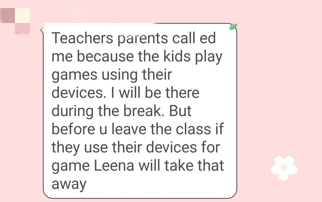 쉬는 시간에 강의실에 원장님께서 직접 들어와서 관리할테니 아이들 게임 못하게 하라는 메세지