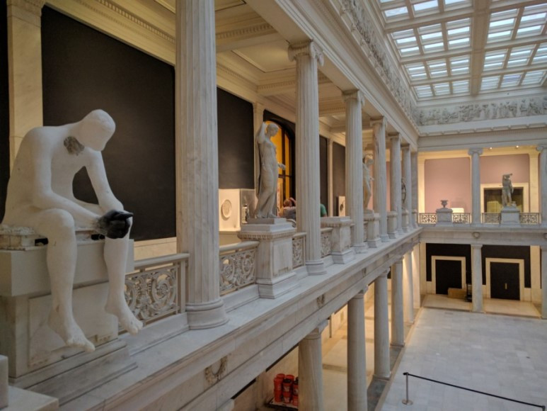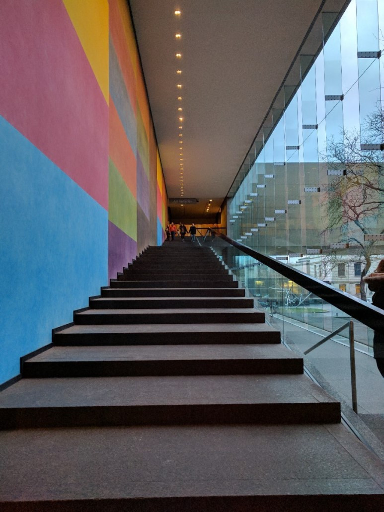 피츠버그 여행에서 빠질 수 없는 카네기 뮤지엄, 외관부터 웅장하고 멋지다. 메트로폴리탄 뮤지엄과 뉴욕 허드슨 밸리 강가에 자리 잡은 락커 펠러 가문의 대저택 카이키트의 정원에 있는 동상을 이곳에서도 만날 수 있다. 언제나 뮤지엄 카페는 일반 카페보다 로맨틱하게 느껴지기 마련이지만, 특히 이곳 CAFE는 조명도 멋지고 통창으로 보이는 바깥 풍경이 그 뮤지엄 카페보다 멋진 곳이었다. 휘트니 뮤지엄의 멤버십 카드를 보여주고 무료 입장권을 받은 뒤 오른편에 난 널따란 계단을 올라갔다. 통창으로 펼쳐지는 멋진 광경을 구경하며 한 계단 한 계단 천천히 걸어 전시장 입구로 들어갔다.