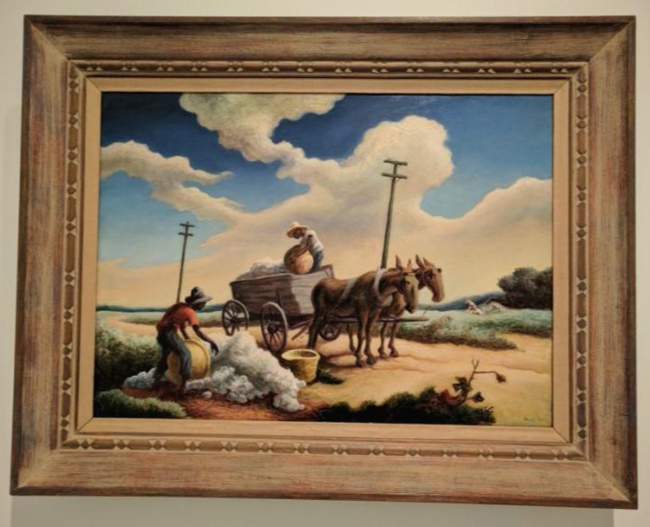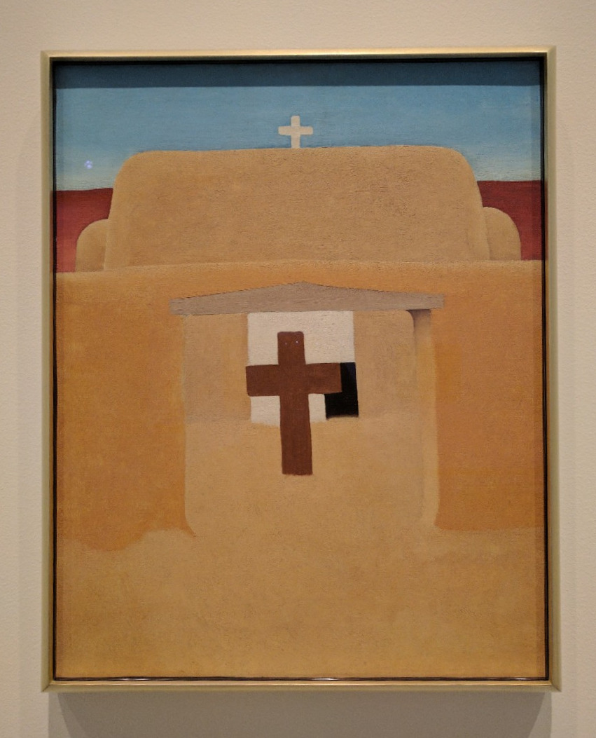 토마스 하트 밴튼 Thomas Hart Benton 의 [Plantation Road, 1944-1945], 조지아 오키프 Georgia O'keeffe 의 [Gate of Adobe Church, 1929], 위스콘신에서 유년시절을 보낸 조지아 오키프는 어릴 때부터 미술에 재능을 보였고, 시카고 아트인스티튜트와 뉴욕 아트 스튜던트 리그에서 미술공부를 했다. 1914년부터 콜럼비아 대 티쳐스 칼리지를 다니던 중 아서 웨슬리 다우 Arthur Wesley Dow 교수의 수업을 듣고 영감을 받았다. 당시 '뉴욕 갤러리 291'의 주인이자 사진작가인 알프레드 스티글리츠 Alfred Stieglitz를 만나 뉴욕의 인기화가로 급성장하게 된다. 이작품은 뉴멕시코로 첫 여행을 간 해에 그린 작품으로 오키프는 말년을 뉴멕시코에서 보내게 되고, 그녀의 작품을 모은 뮤지엄이 뉴멕시코 산타페에 있다.