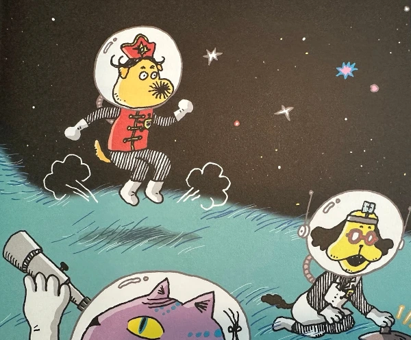 우주에 강아지 모양의 혜성이 있다. 주인공이 우주선을 타고 강아지 혜성을 탐사하러 간다. 착륙해서 강아지 혜성에 발을 내디뎠다. 그런데 왜 이렇게 땅이 말랑말랑하지? 그리고 어디선가 심장 박동 같은 소리가 들린다. 알고 보니 강아지 모양 혜성이 아니라 진짜 강아지다. 여덟 살 상윤이는 이 책, ≪우주 탐험단 네발로행진호≫를 무척 좋아했다.