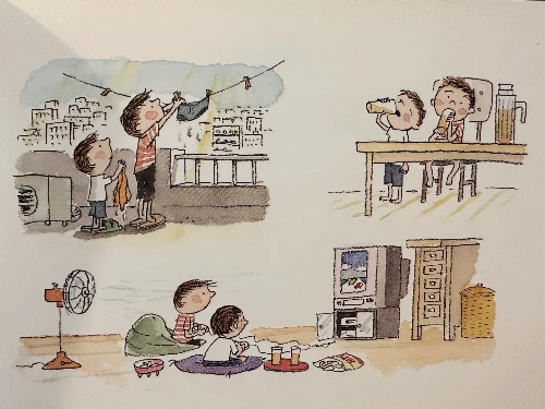 여름 방학, 부모님은 일하느라 집에 없고 형제는 수영장에 다녀와서 게임 한 판을 하고 감자칩을 먹고 보리차를 마신다. 책 속 아이들이 보리차를 먹는 장면을 보면서, 어린 시절 우리집 냉장고에 있던 델몬트병에 담긴 보리차가 떠올랐다. 엄마는 다 끓으면 삐 소리가 나는 주전자에 보리 티백을 넣고 물을 끓인 뒤 식으면 델몬트 유리병에 담았다. 학교에 다녀와서 냉장고를 열어 그 델몬트병에 담긴 보리차를 보면 보기만 해도 갈증이 싹 가시는 느낌이었다.