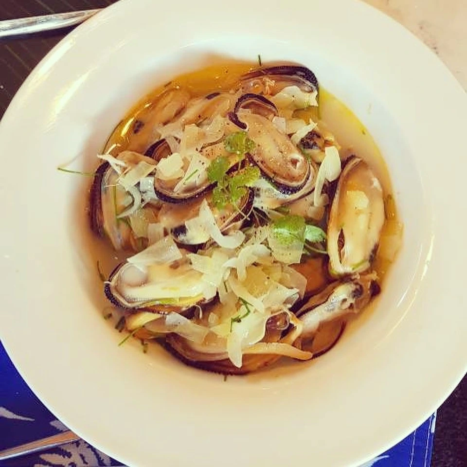 홍합은 먼저 씻어서 찜통에 찌고 껍질을 다 까놓고 끓인 물은 홍합의 짠맛이 남아 있어 한 컵 정도 남겨 두었다가 소스 만들 때 넣는다. 버터에 잘게 썰은 양파를 넣고 볶다가 홍합 국물과 화이트 와인 한 컵을 넣어 끓여주고 레몬즙을 뿌려주면 금방 완성된다. 마지막으로 부추를 잘게 잘라 골고루 뿌려준 뒤, 장식으로 화분에 키우고 있던 고수를 조금 떼어 넣었다. 고수의 향이 함께 어울려 좋긴 했지만 고수는 호불호가 갈리기 때문에 취향 것 넣으면 된다.