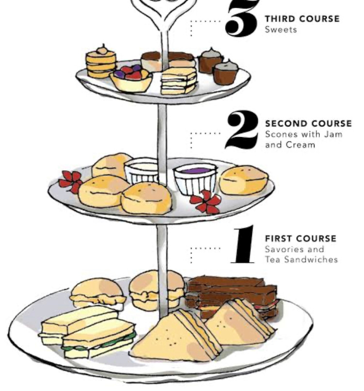 보통 호텔이나 고급 카페에서 나오는 애프터눈 티 세트는 이렇게 3단으로 나옵니다. 그럼 어느 층 부터 먹어야 할까요? 간단히 설명하자면 맨 아랫칸부터 먹습니다.