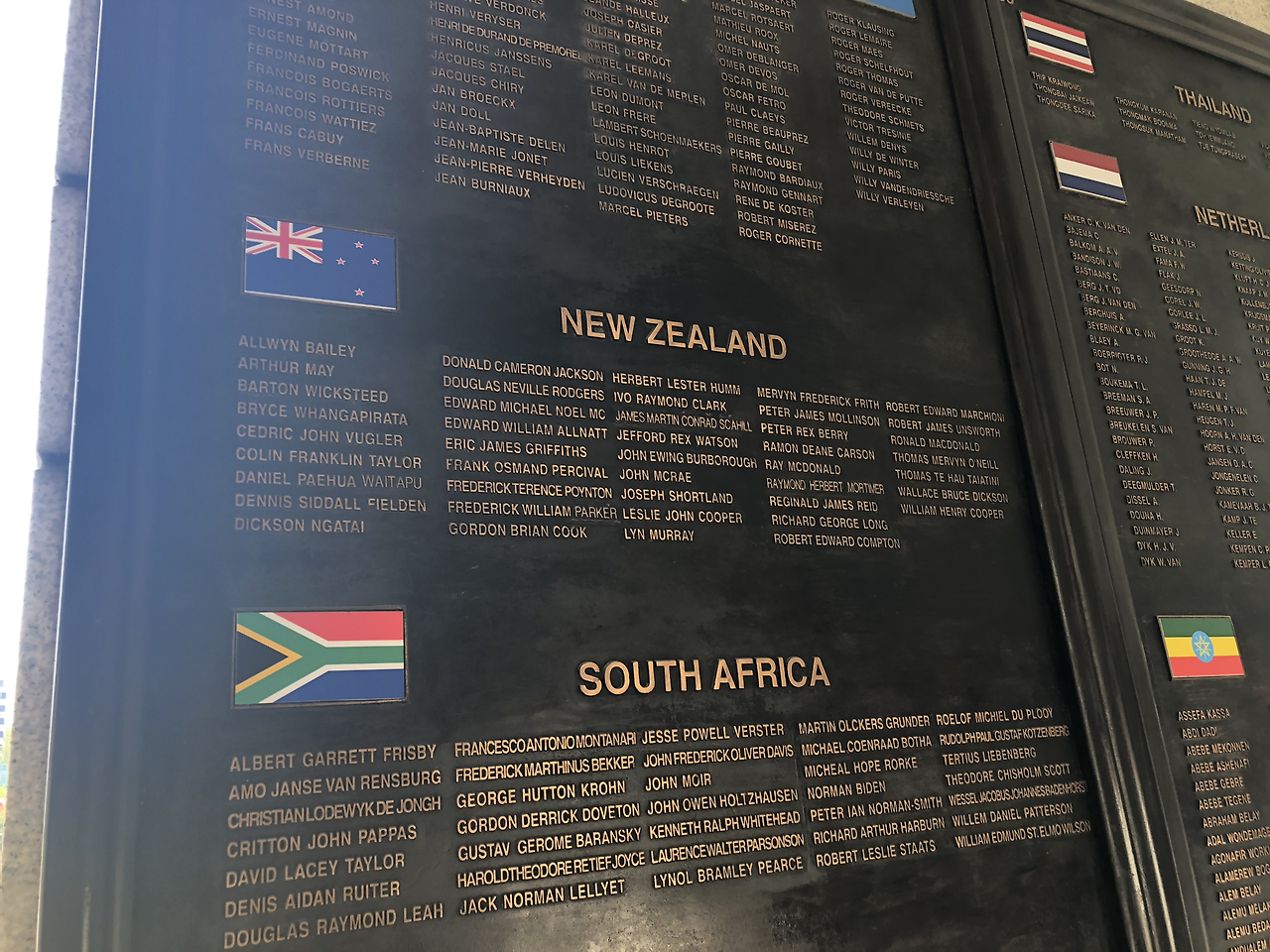 넓은 광장 가장자리에 우리나라에 파견되어 목숨을 잃은 군인들의 이름이 새겨진 벽이 있었다.