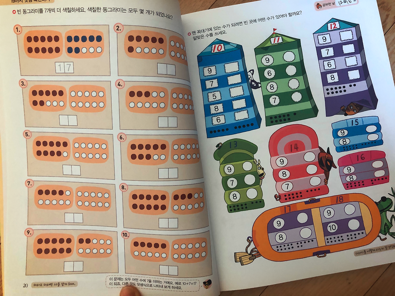 이 교재의 장점은 한 페이지 안에서 쉬운 문제로 워밍업하고 어려운 문제까지 도달할 수 있게 되어 있다. 10문제면 5문제는 쉽고 3문제는 중간 난리도 2문제는 제일 어려운 것이다. 적절하고 골고루 섞여 있어서 좋고 컬러풀한 디자인도 너무 맘에 든다. 시각적 자극을 많이 받고 자란 요즘 아이들에게 어쩌면 필요한 요소 일 수도 있다.