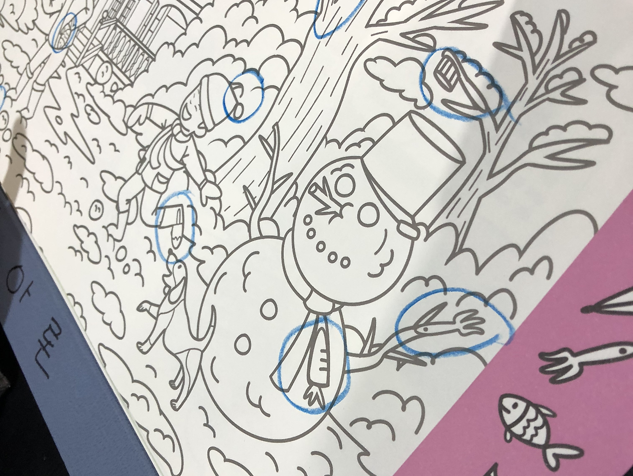 활동지에 아침에 아이들과 아빠와 함께한 비슷한 풍경이 있어서 선택해 보게 되었다. 활동지 내용은 숨은 그림 찾기를 하고 색칠을 하면서 그림을 완성해 보는 것이다.