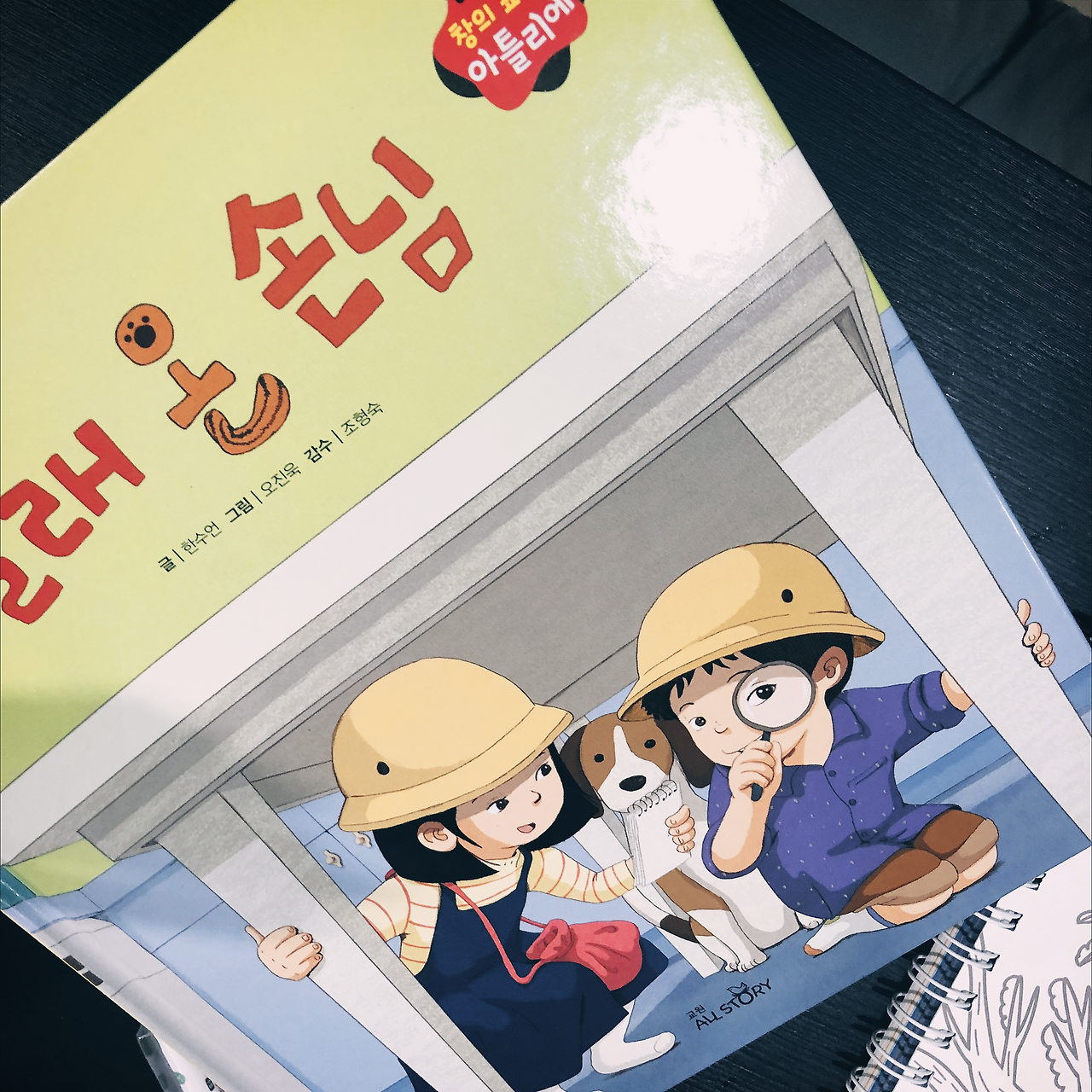 눈 사람 만드는 풍경도 있고 해서 오늘의 독서 미술을 비슷한 것으로 골랐다. 창의력 아뜰리에 책의 좋은 점은 활동책이 있다는 것. 하지만 주제가 정해져 있을 뿐 재료는 각자 준비해야 한다. 책 제목은 <몰래 온 손님>으로 새로 이사 온 남매가 새 집을 탐험하는 이야기이다.