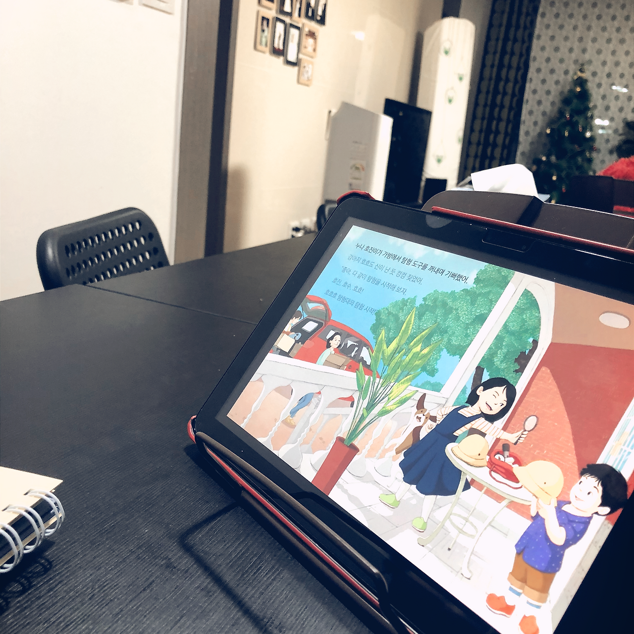 목이 조금 아픈 날은 태블릿 e북을 이용한다.