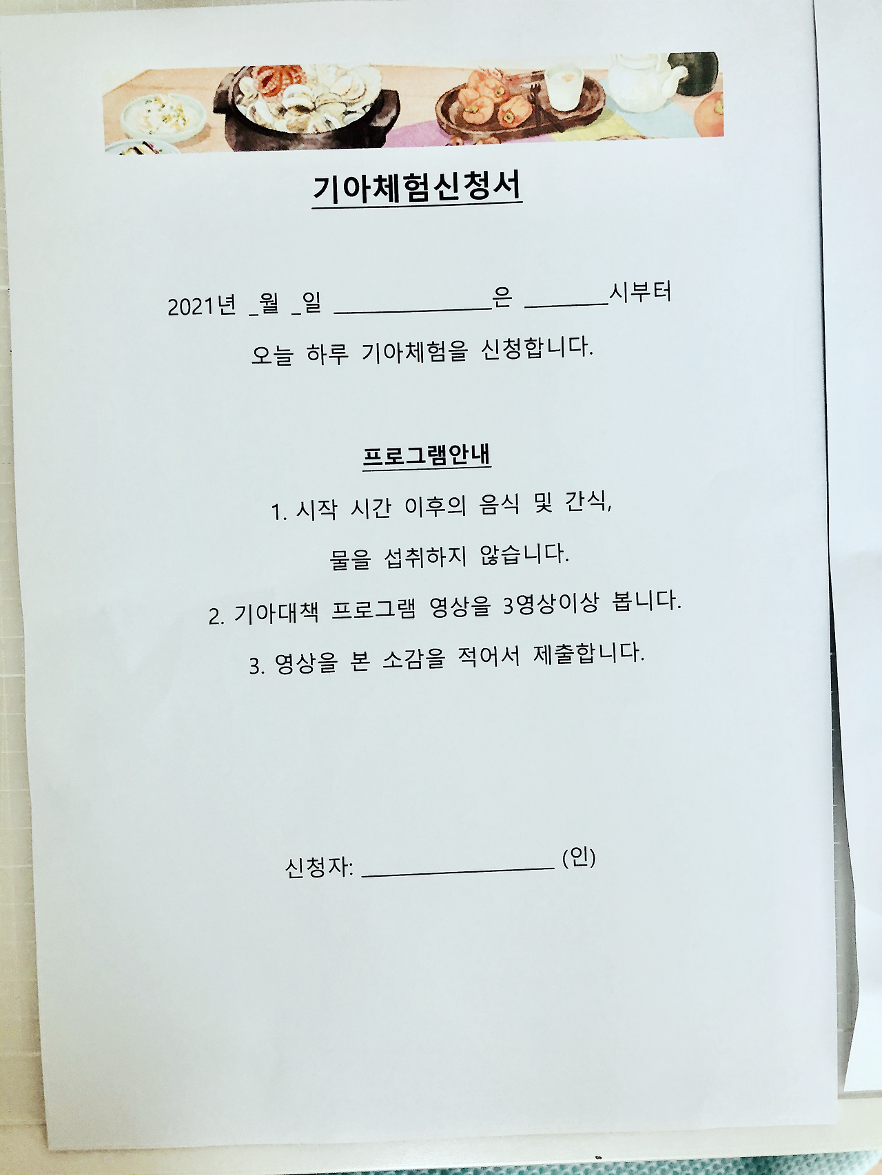 점심시간에 부린 투정이라 점심시간 이후로 내일 아침까지 굶는 조건으로 신청서를 내밀었다. 올해 초등학교 1학년 되는 아이여도 막상 본인 이름 석자를 쓰고 사인을 하려니 망설여졌나 보다.