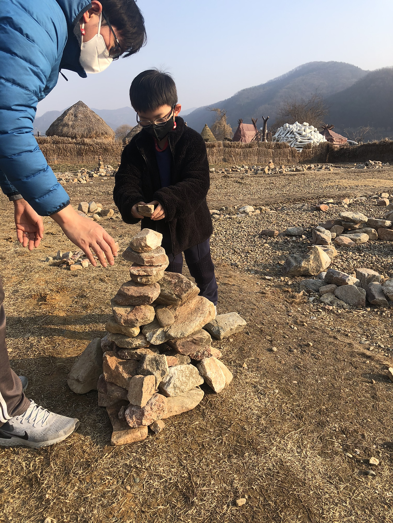 - 야외 아이들이 뛰어 놀 곳이 많고 실제로 움집이나 동굴체험을 할 수 있다. 특히 강가 옆 돌 쌓기 놀이는 아이들이 오래 머물렀다.