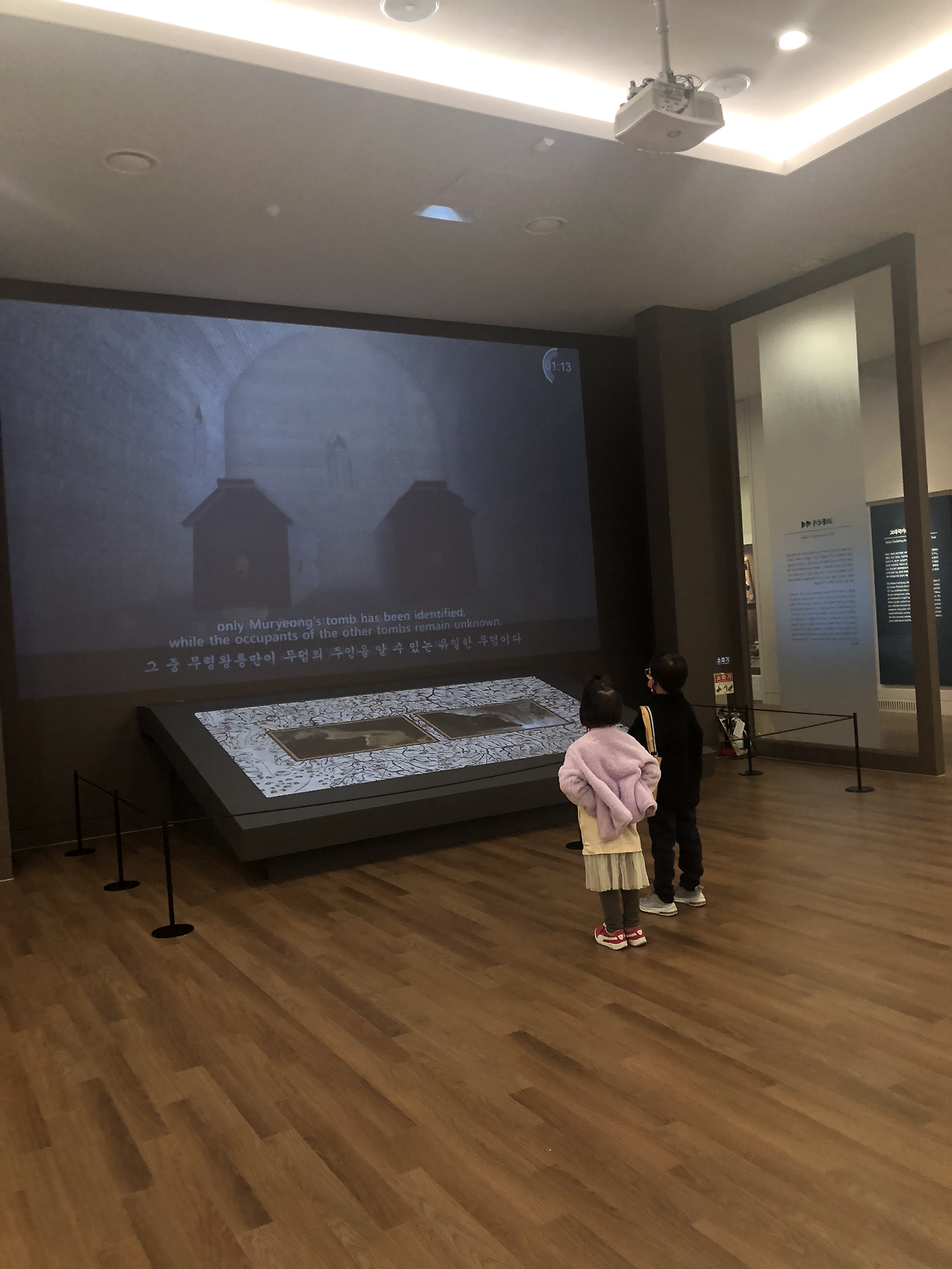 아주 옛날 옛적 나의 라테 시절, 방문했을 때에는 무령왕릉 실제 내부가 공개되었었던 것 같다. 하지만 지금은 전시관으로 바뀌었는데 전시관 내부가 훌륭히 꾸며져 있어 실제 내부를 다 들어가 보는 듯한 체험을 할 수 있다. 왕릉 입구는 영구보존을 위해 아예 닫아 놓았는데 문화재를 소중히 보고하려면 그 결정이 맞는 것 같다.