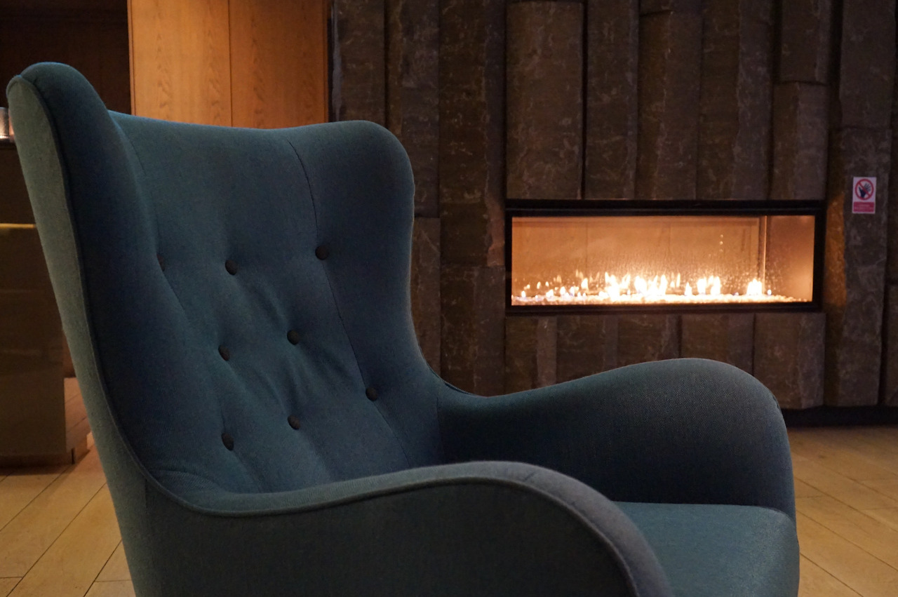 푹신한 소파와 따뜻한 벽난로 옆에서 몸을 녹이는 중.