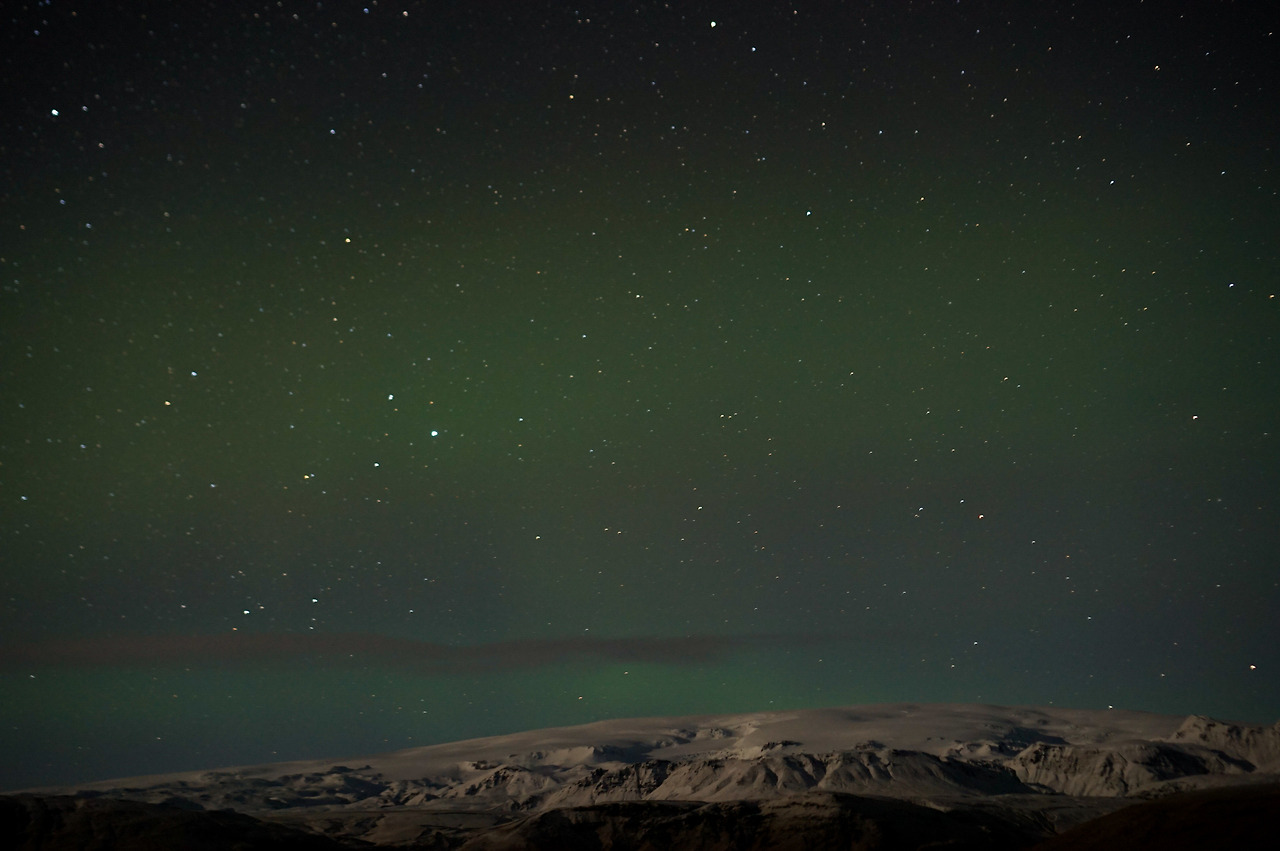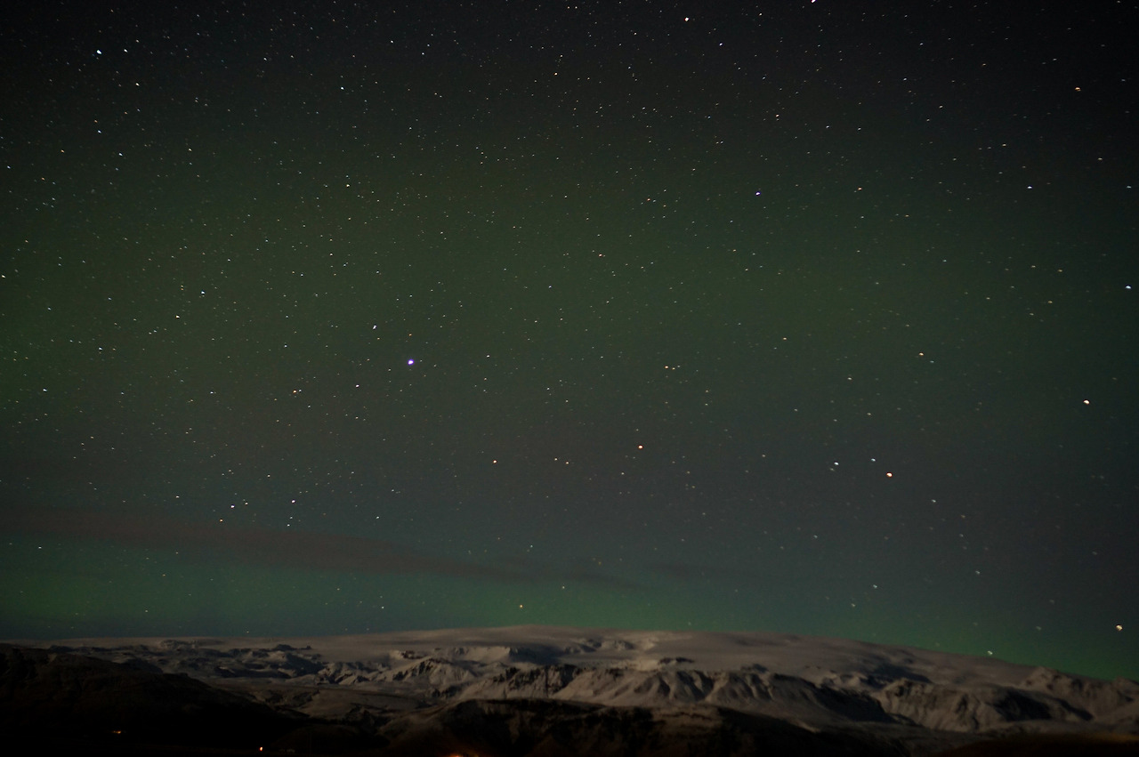 아이슬란드 온 이후로, 한 번도 오로라의 세기가 강해진 적이 없어