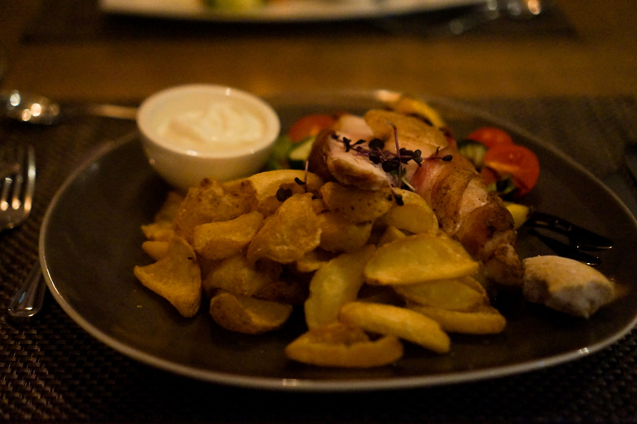 나는 훈제 치킨 스테이크를, 남편은 생선 스테이크를 시켰다.