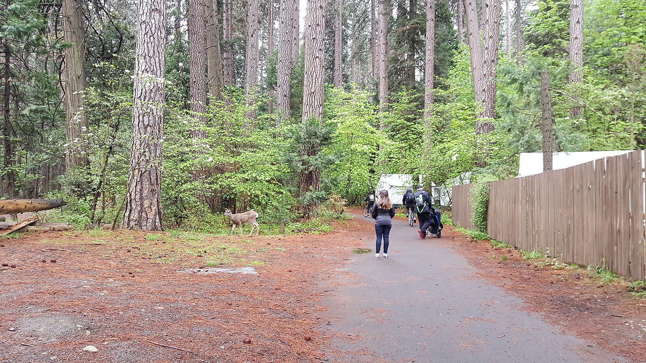 아침에 일어나 강아지들 데리고 캠프장을 한바퀴 산책을 했다. 우리 사이트는 화장실이랑 가까워서 사람들이 우리 사이트 쪽으로 지나가고 있었다. 캠핑을 가면 항상 어느자리가 좋은가 둘러보는 습관이 있는데 upper pine campground는 211 그리고 239가 캠프 사이트 끝에 위치해 있고 그 옆으로 creek이 흐르고 있어서 좋았다. 어제 새벽에 도착해서 요세미티 파크 입구에서 entrance fee 를 내지 못했고( 나가면서 내도 된다. 나갈때 파크 레인저가 물어본다) 캠프사이트 입구에 있는 사무실이 닫아서 체크인을 못해 아침 8시반쯤 갔더니 10시 체크인을 할 수 있다고 해서 자전거를 타고 바람도 쐴 겸 비지터 센터로 향했다.