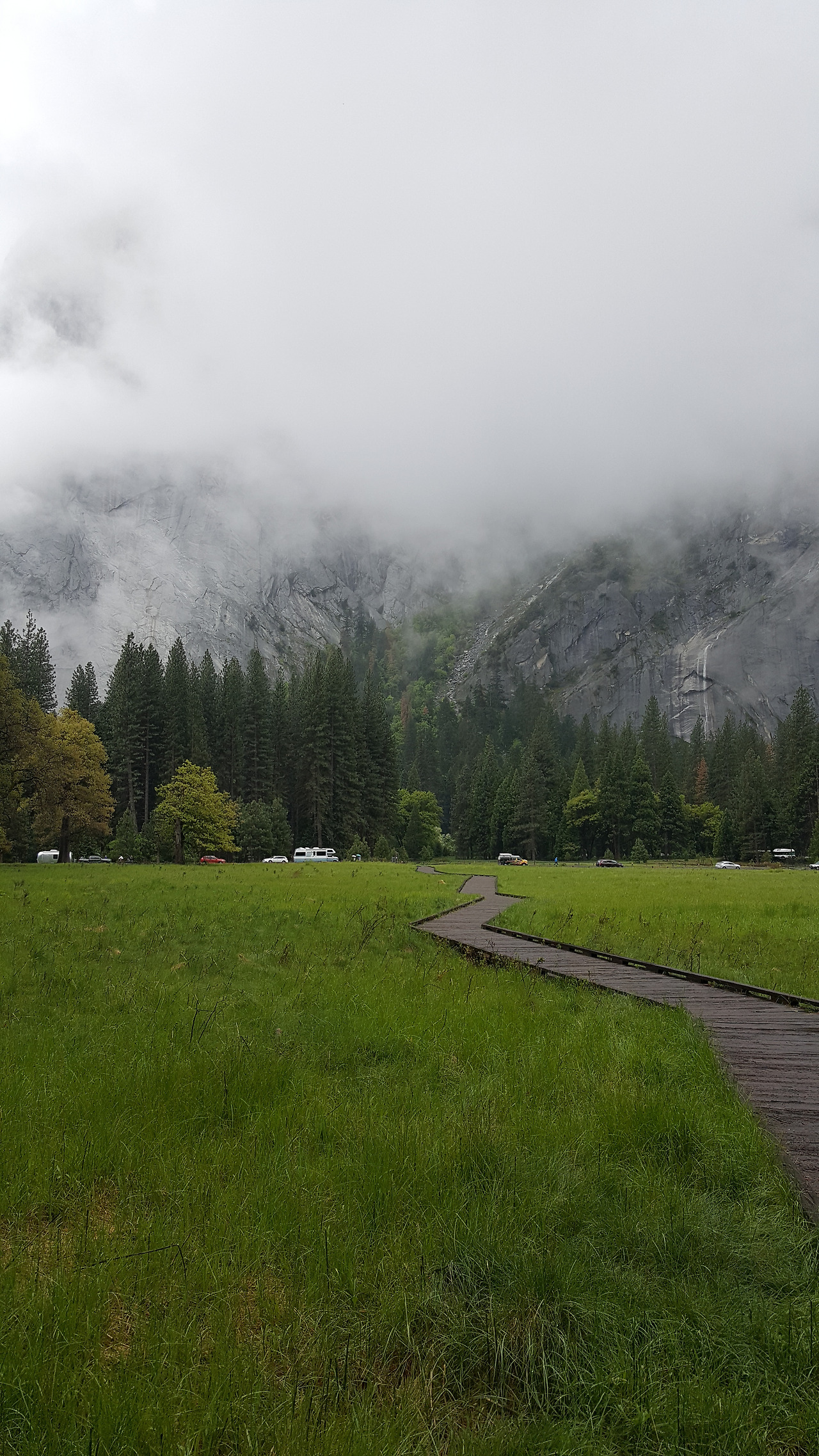 지난 11월 1일 아침 일곱시에 일어나 6개월 후 날짜인 메모리얼 연휴에 맞춰 요세미티 캠프사이트를 예약하려고 광클을 했으나, 그 많은 캠프사이트가 30초 만에 솔드아웃되서 허망하게 스크린을 바라봤다. 그 뒤로 마음을 닫고 요세미티 빌리지 안에 있는 캠프그라운드에서 캠핑하는 것은 포기를 하고 살았다. 왜 그랬는지 모르겠지만 지난 목요일 오후 요세미티 안에 있는 캠프 그라운드들의 사이트를 봤더니..... 이게 왠 떡인지 몇 자리 있는 것이다. 좀 더 좋은 자리를 비교할 마음의 여유도 없이 35' 길이의 사이트가 보이자 마자 예약을 해버렸다. 남편에게 쪽지를 보냈다 " 내일 요세미티로 캠핑가요. 예약 했어요" 하루 전날 예약해서 다음날 캠핑가는 일이 그리 놀랄 일도 아니다. 아마도 Tioga Pass( 요세미티를 중심으로 동쪽으로 향하는 도로 아주 유명한 도로)가 눈 때문에 도로가 폐쇄되고, 비가 계속 내리고 있어서 예약을 취소한 이들 덕분이리라.